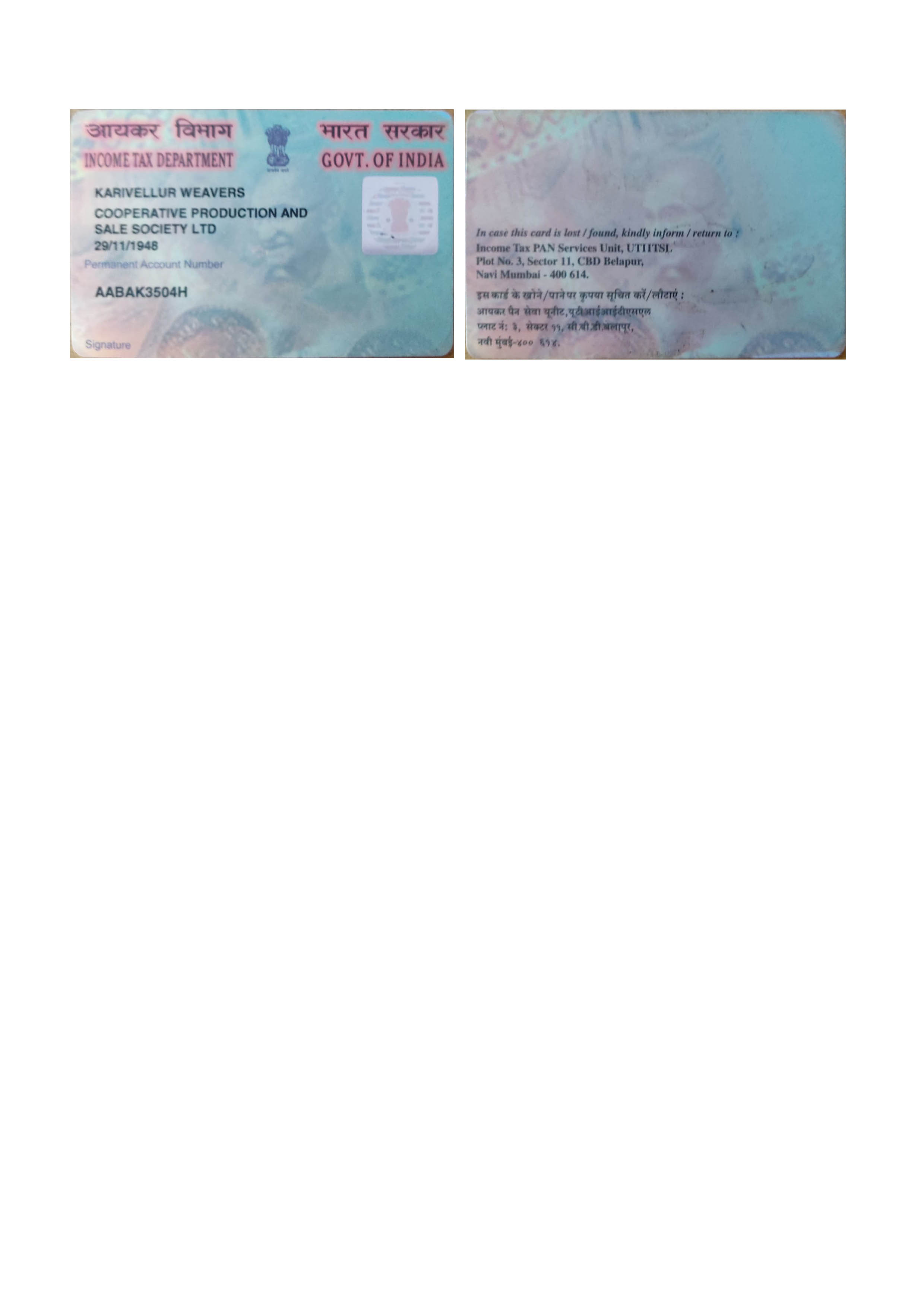 | Account Holder Name | The Karivellur Weavers Co op P S Society |