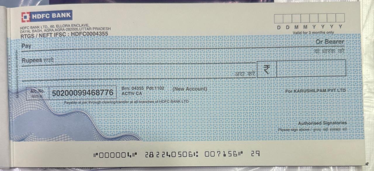 | Account Holder Name | Karushilpam Pvt Ltd |