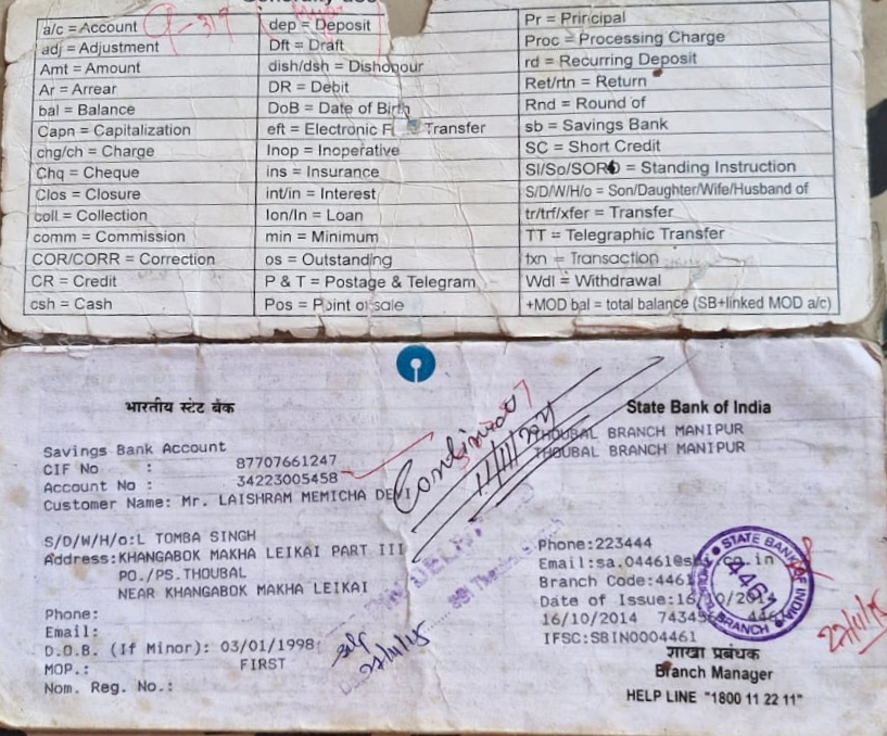 | Account Holder Name | LAISHRAM MEMICHA DEVI |