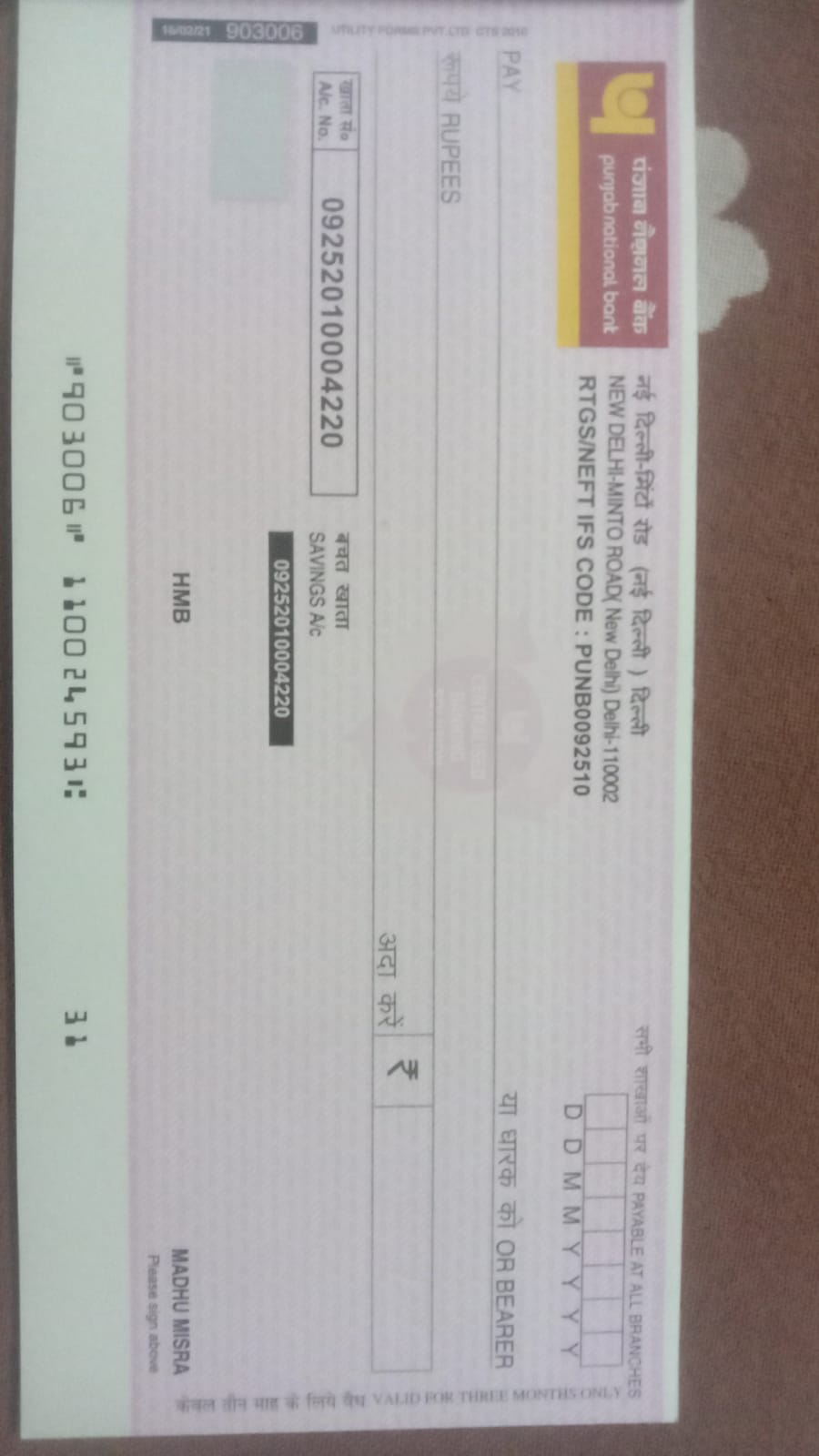 | Account Holder Name | MADHU MISHRA |