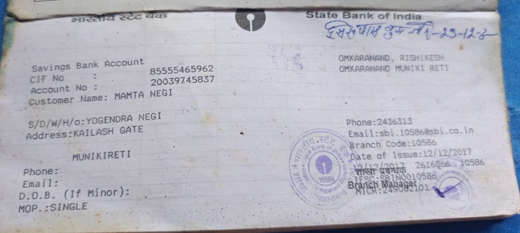 | City/District | KAILASH GATE MUNIKIRETI TEHRI GARHWAL |