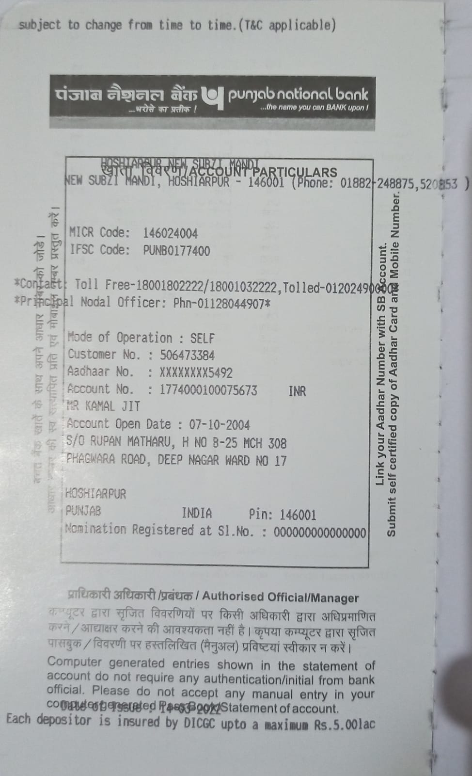| Permanent Address | B-25,MCH-308 DEEP NAGAR PHAGWARA ROAD |