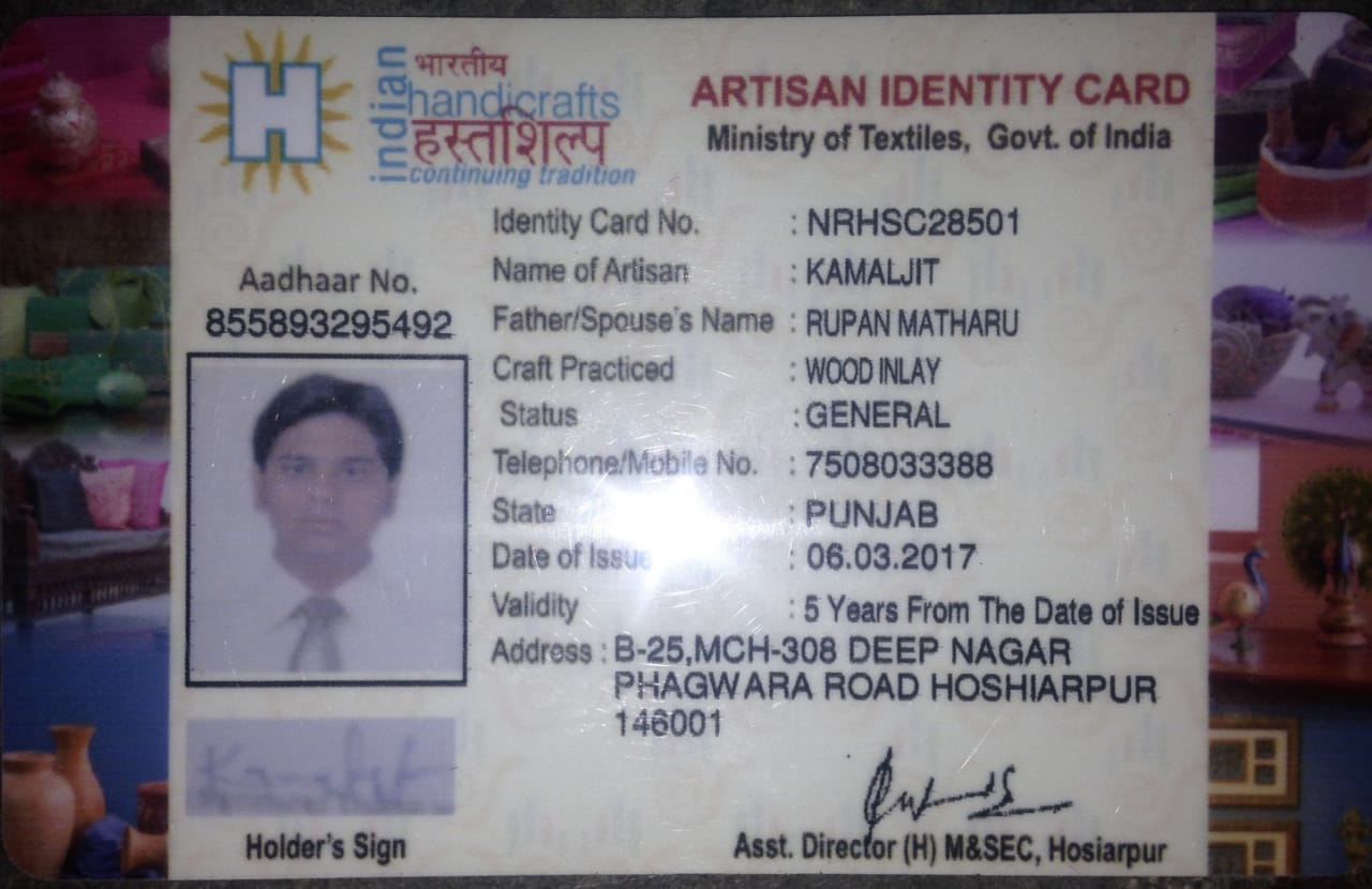 Working as handicraft artisan in the world famous craft of wood inlay for the last 30 years. This craft started somewhere around 1820 AD in the Hoshiarpur distt. of state of Punjab. Right from the beginning Hoshiarpur was very famous for the export of ivory inlay craft. My forefathers were master of this fine craft and i represent 5th generation of this craft while my son KAMALJIT (NATIONAL & NATIONAL MERIT CERTIFICATE holder) is holding the flag of wood inlay as 6th generation artist. we have created very high quality artifacts representing cultural heritage of culturally rich State of PUNJAB.