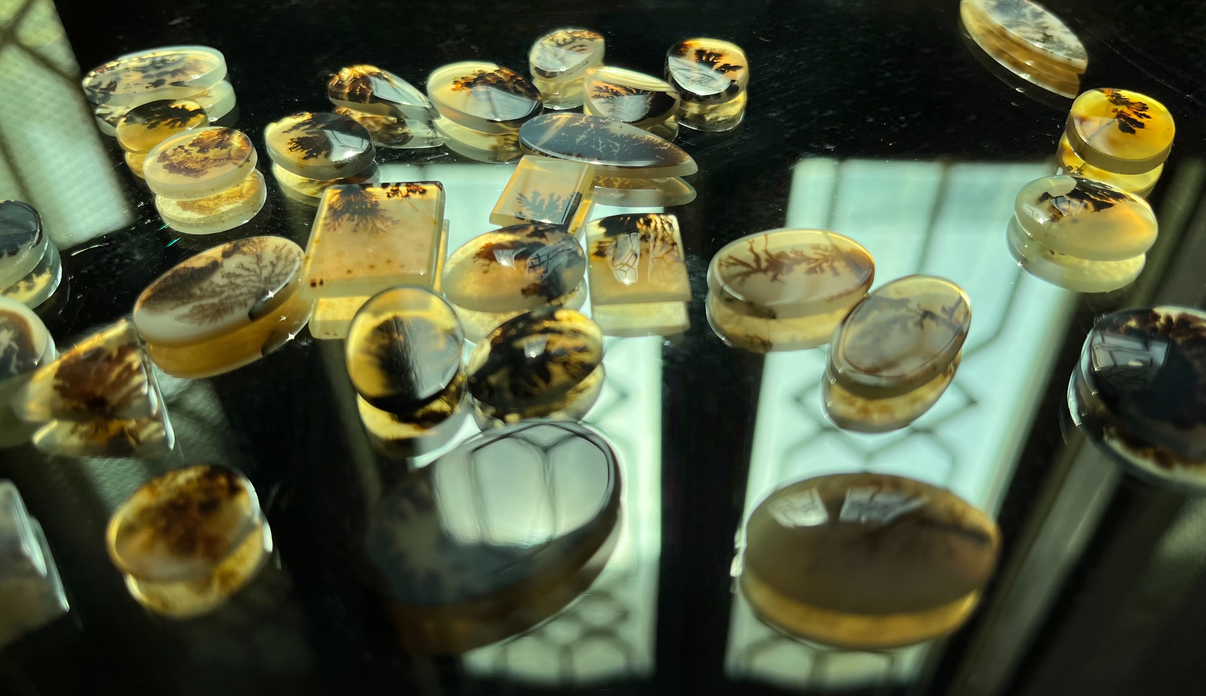 Directly sourced from Banda, every stone carries its natural dendritic patterns.