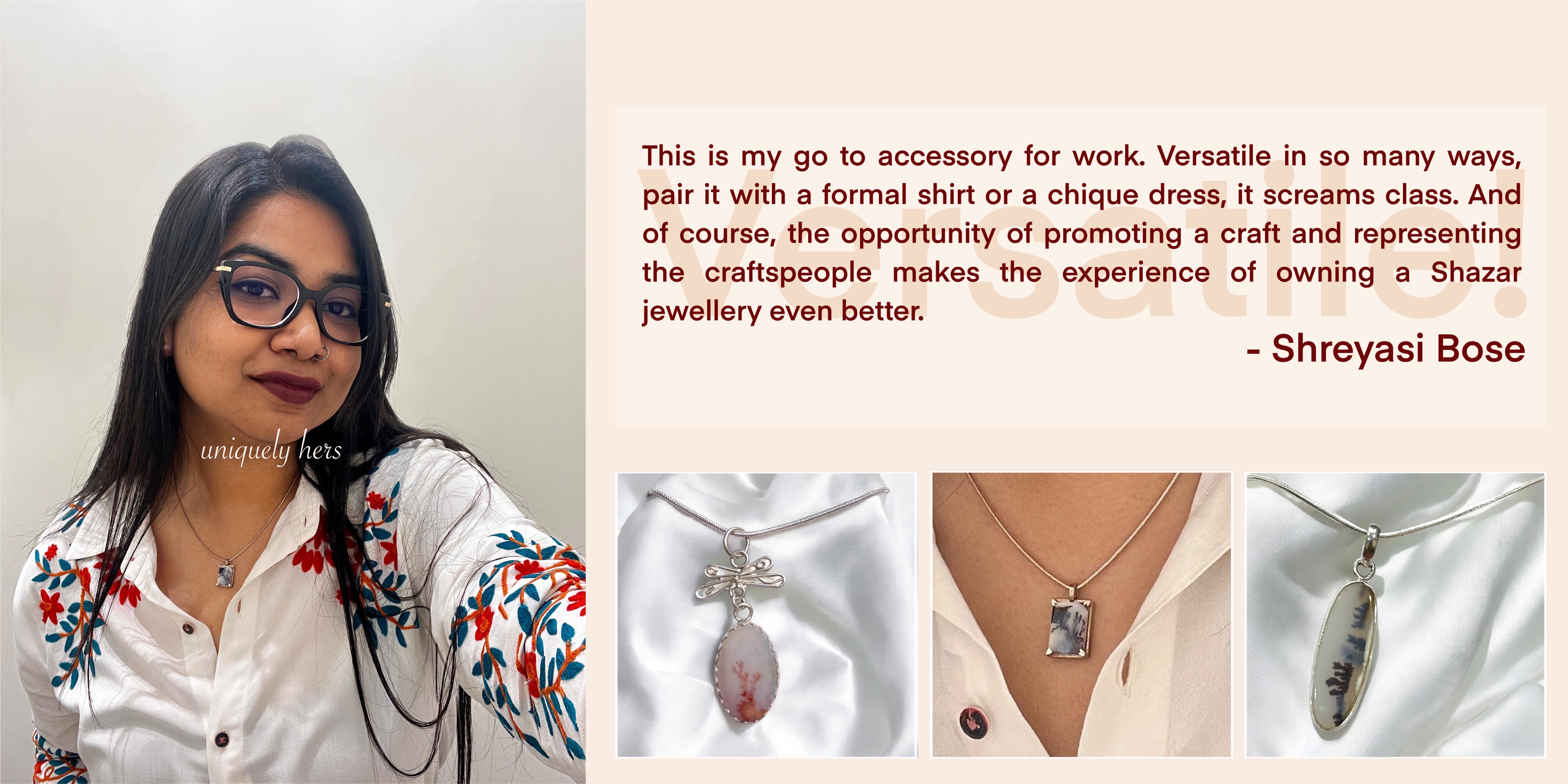 Welcome to ochrello, where artistry meets rarity. We are a premium Indian jewellery brand dedicated to market and spread awareness about various unique handicrafts of the treasure trove that is India. Reviving the ancient allure of Shazar stones — nature’s own masterpieces, delicately encased in handcrafted silver.