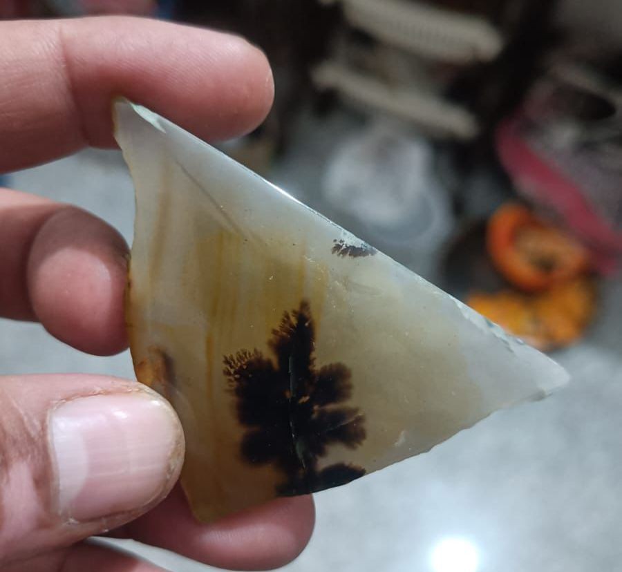 These are natural gemstones known as shazar or dendritic agate. The word shazar is rooted in the Arabic word Shazar meaning tree. it is a dendritic agate formed by gradual entrapment of algae and other trace minerals into silica stones, It is a gift exclusive to the Ken river: A local myth suggests that the river takes an imprint of anything that stays still in front of it very long. Polishing of this stone is only done in Banda. Here the stone is encased in a frame of sterling silver: The subtle beauty of this Stone makes it ideal for any formal or casual occasion. Due to the nature of its formation, no two stones are similar, making this, a truly one of a kind.
