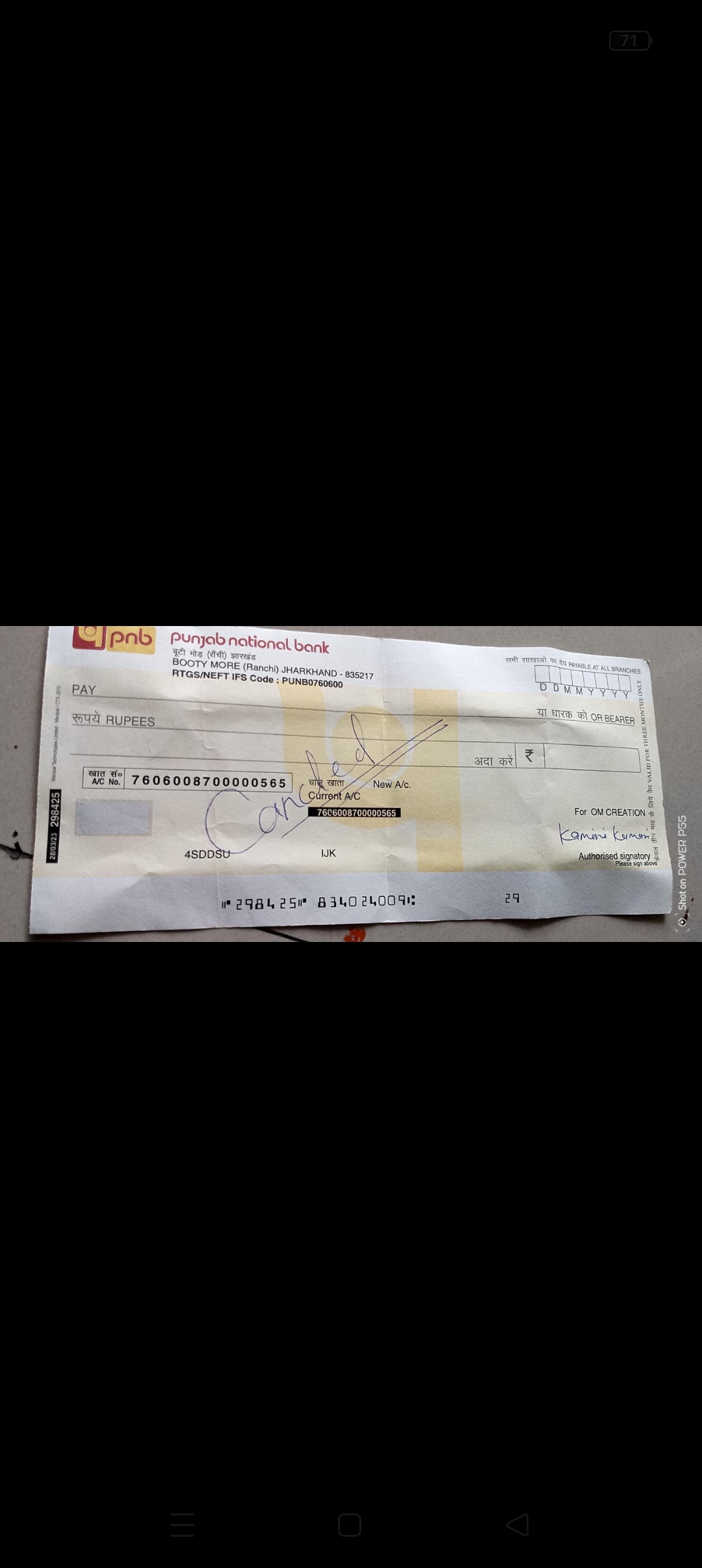 | Account Holder Name | KAMINI KUMARI |