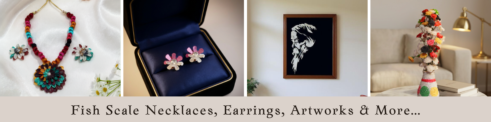 Puspita Handicraft Products is especially known for its innovative creations made from fish scales, transformed into stunning earrings, necklaces, pendants and artistic pieces. Each product carries a story of resilience, sustainability and craftsmanship, crafted with care and inspired by empowerment.