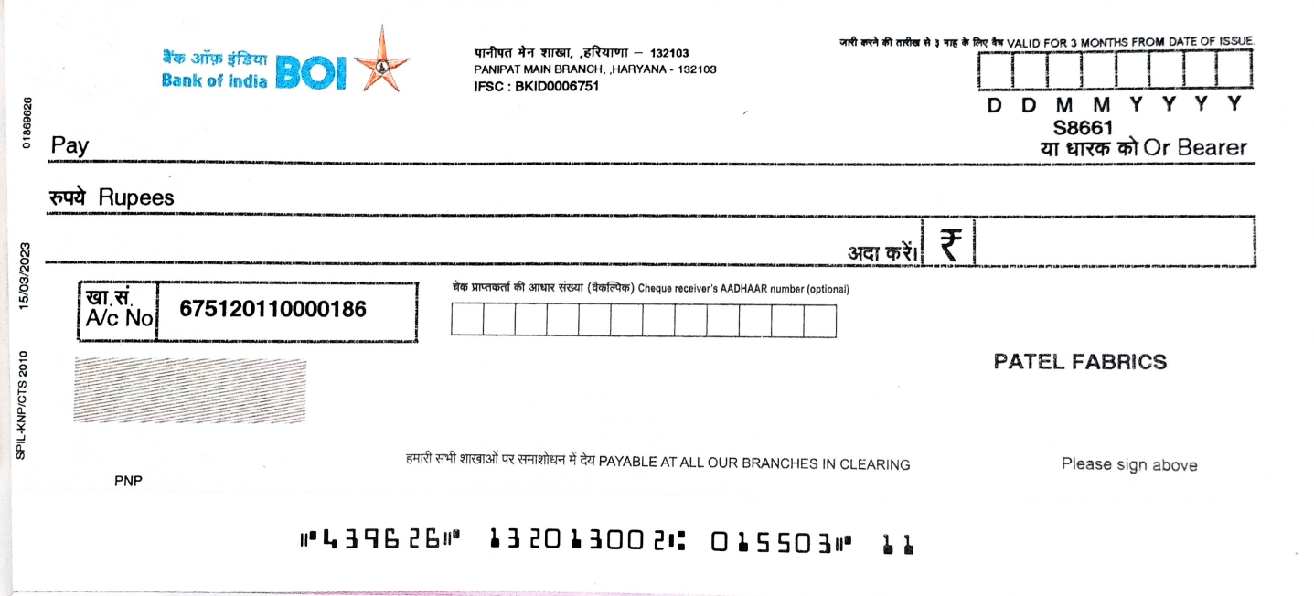| Account Holder Name | Patel Fabrics |
