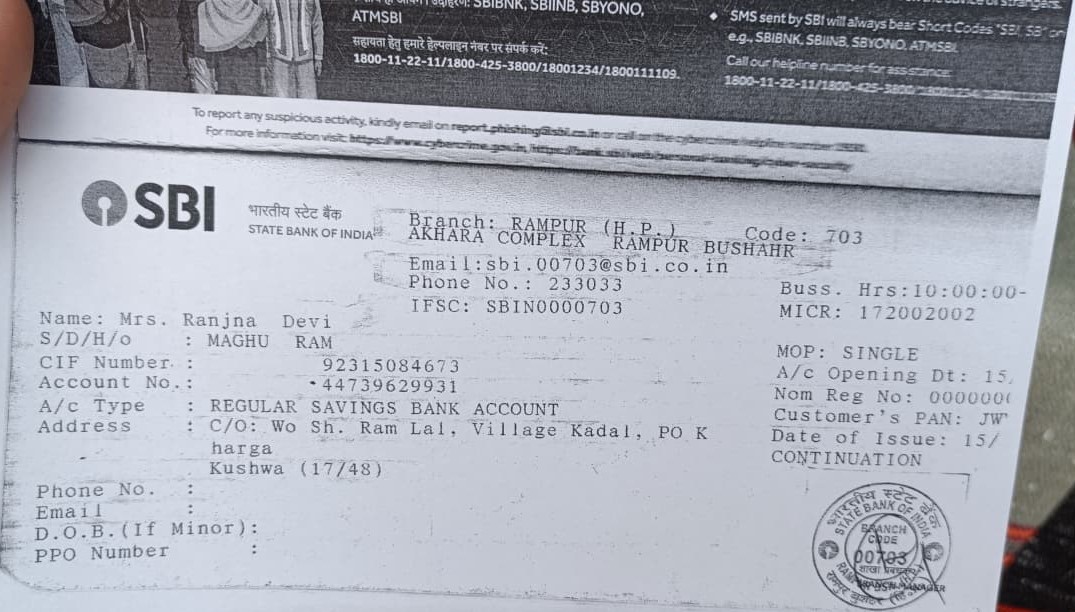 | Account Holder Name | RANJNA DEVI |