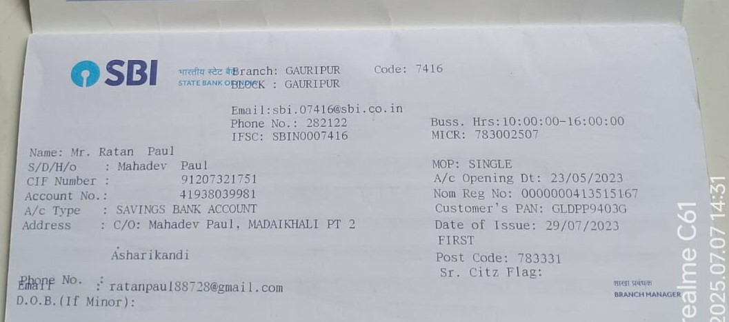 Account Holder Name RATAN PAUL
