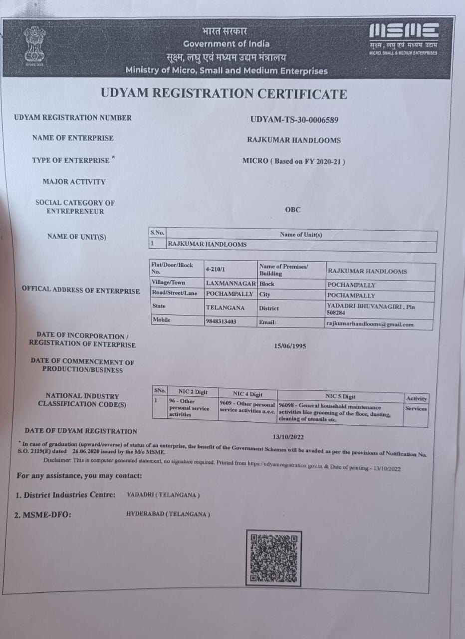 | Organization Registration ID | UDYAM-TS-30-0006589 |