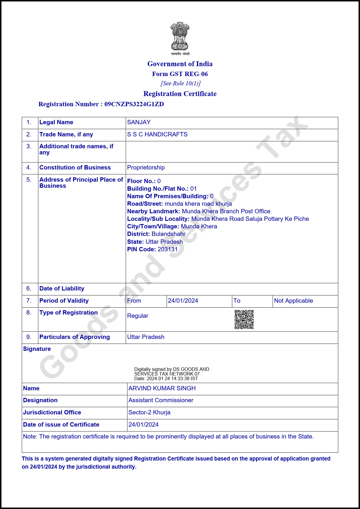 | GST/Enrollment ID | 09CNZPS3224G1ZD |