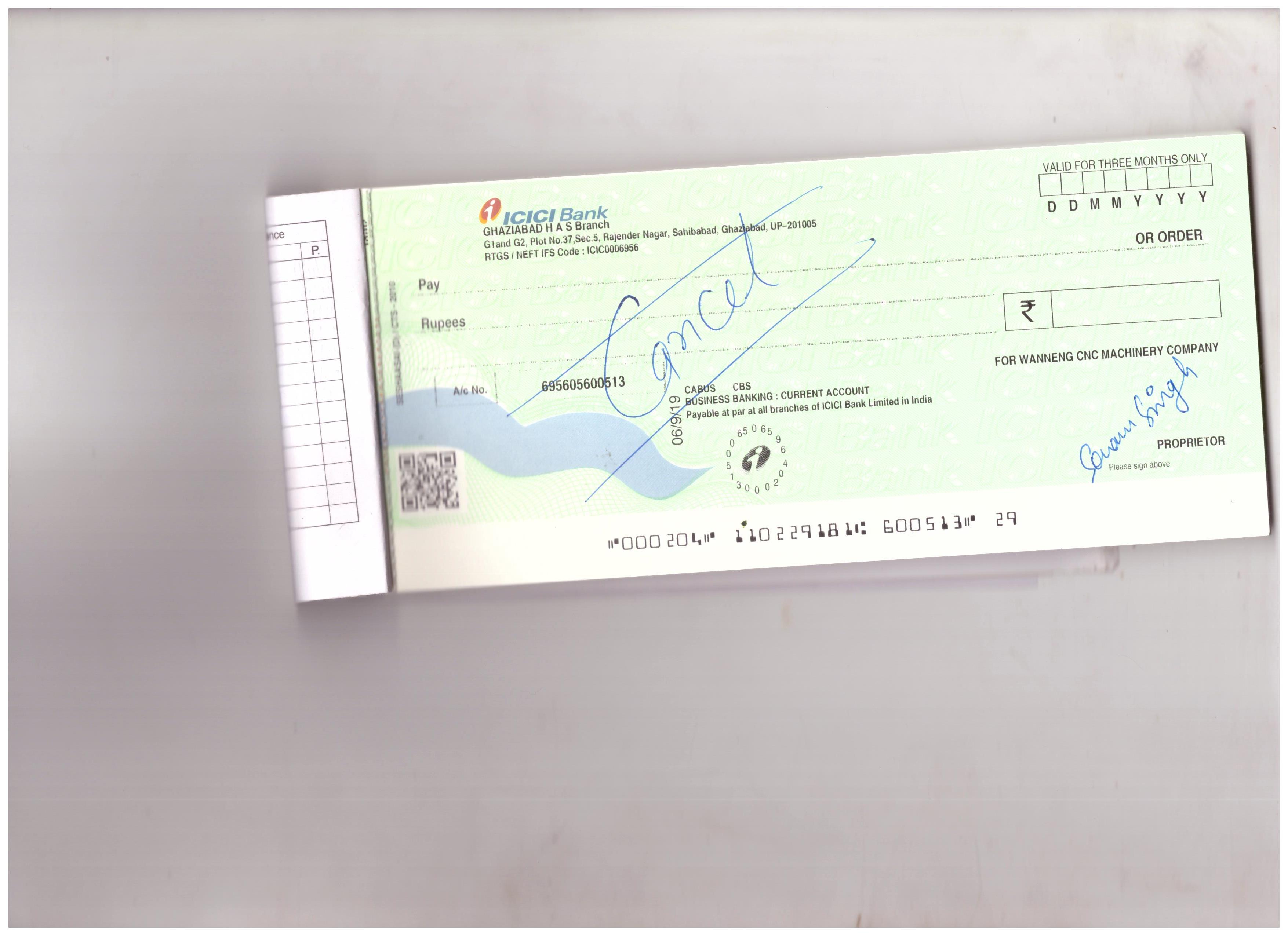 | Account Holder Name | Wanneng CNC Machinery Company |