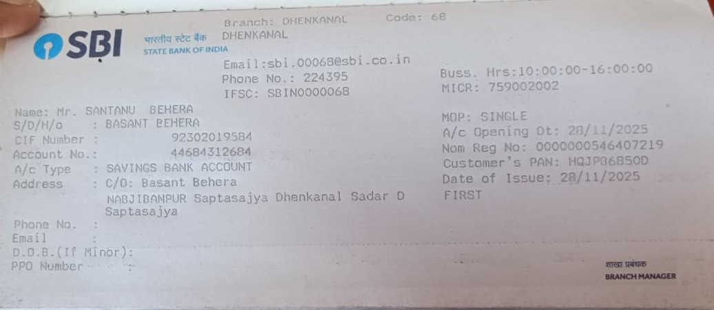 Account Holder Name SANTANU BEHERA