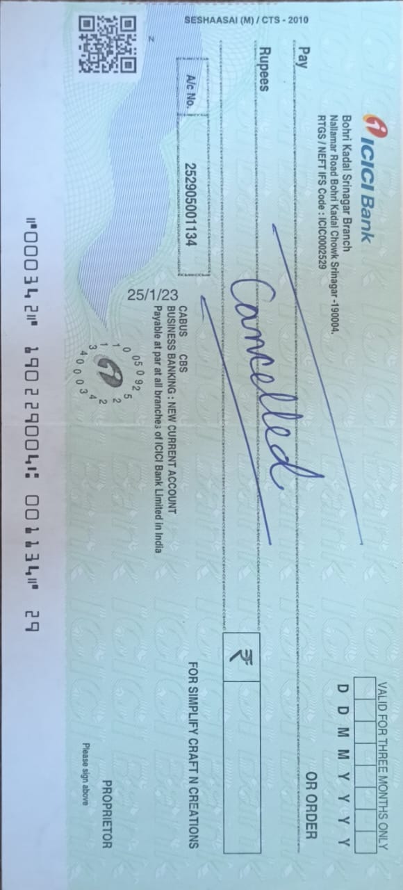 Account Holder Name SIMPLIFY CRAFT N CREATIONS