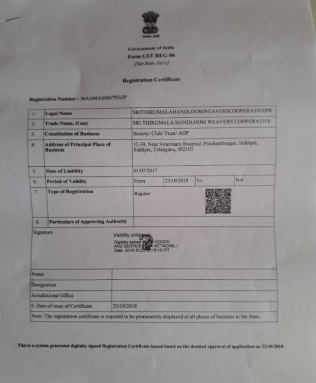 | Seller Name | SRI THIRUMALA HANDLOOM WEAVERS COOPERATIVE PRODUCTION AND SALES SOCIETY |