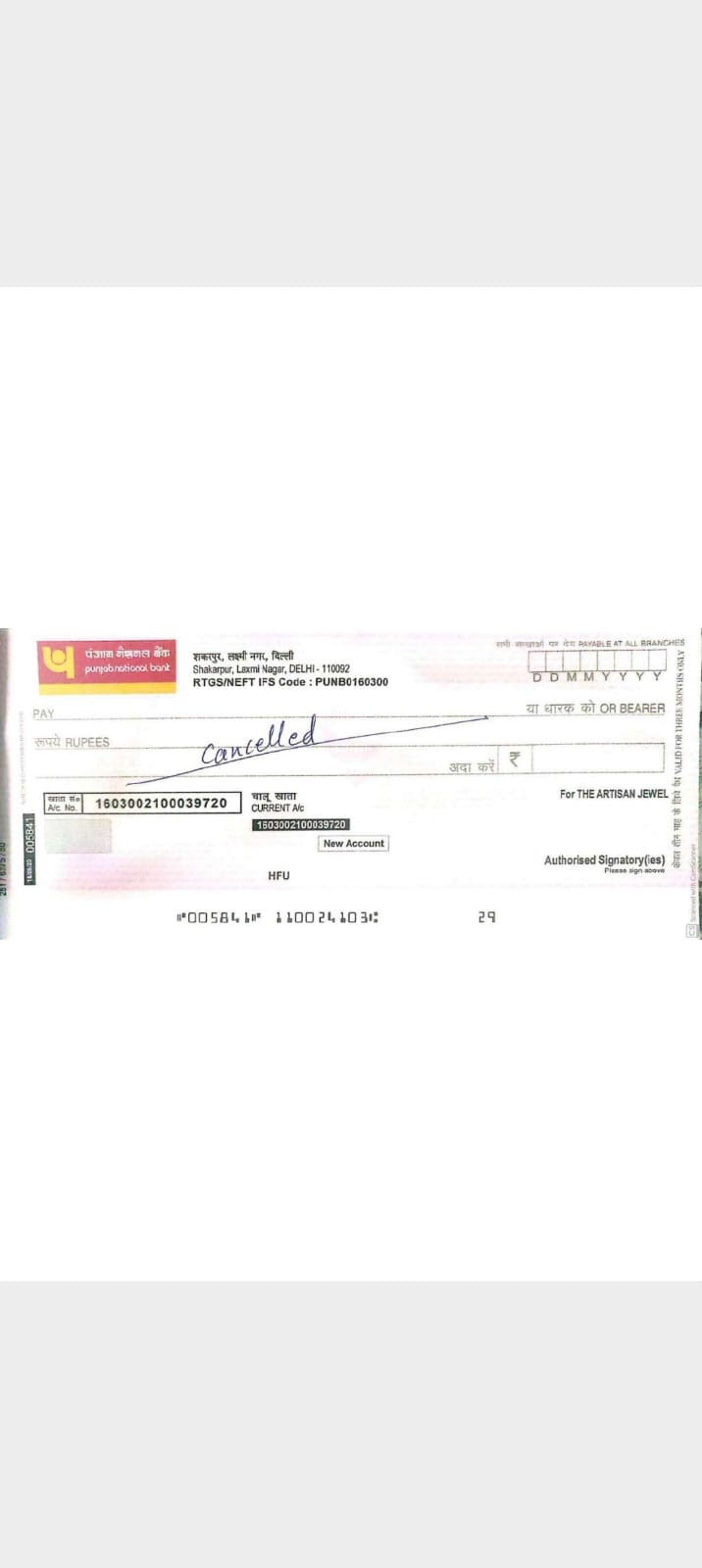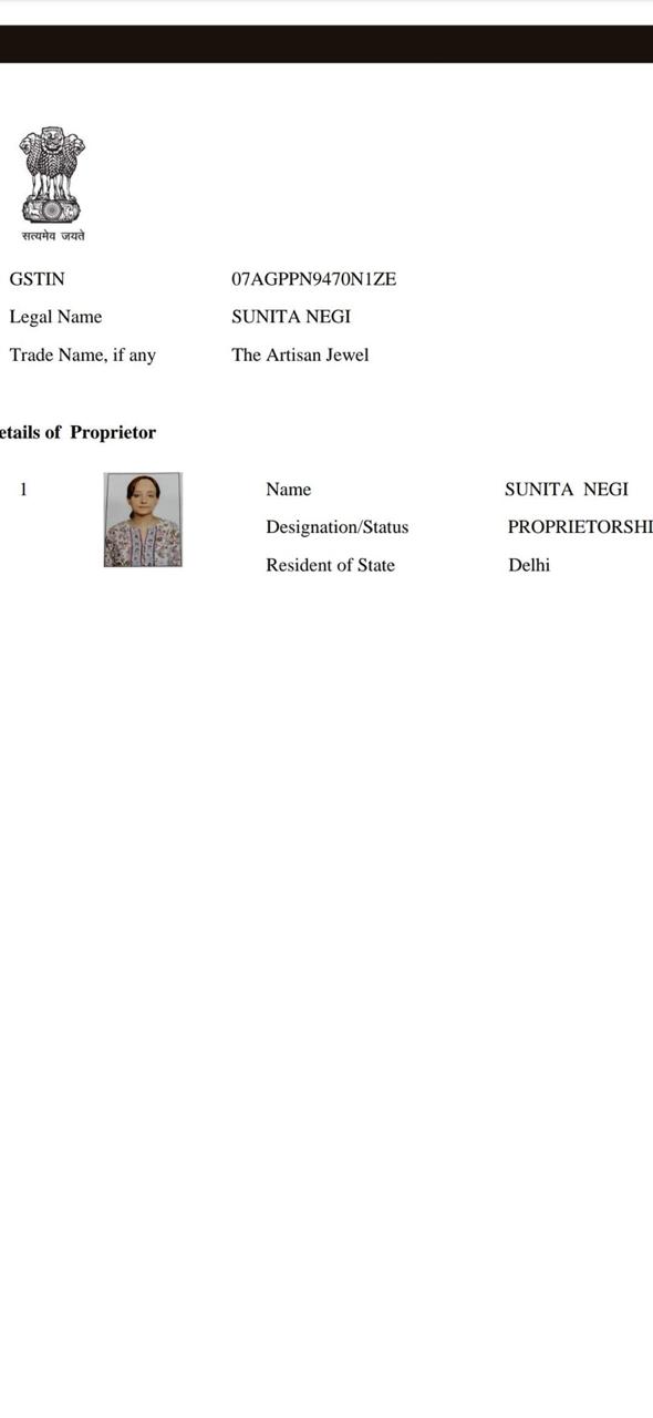 | Account Holder Name | THE ARTISAN JEWEL |