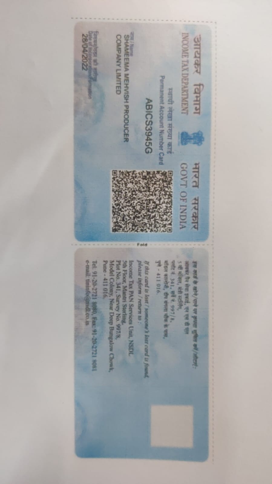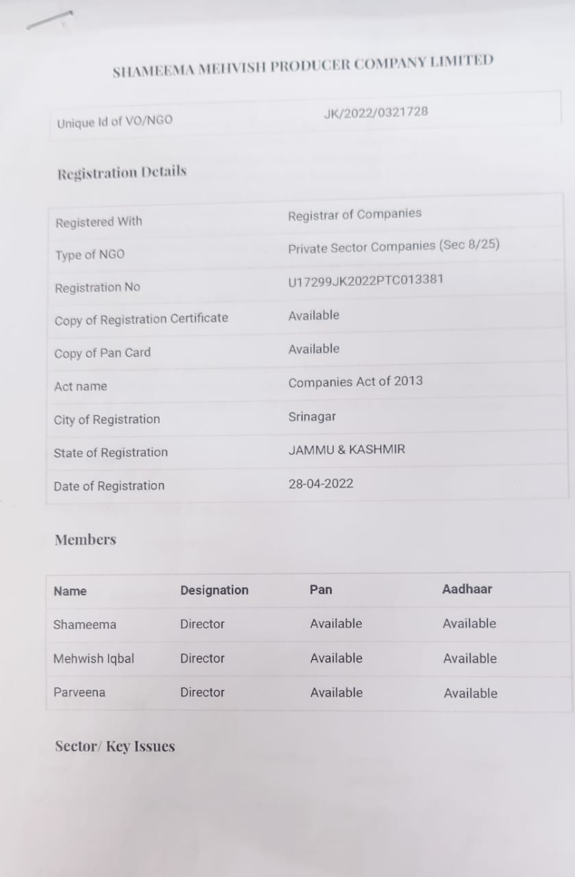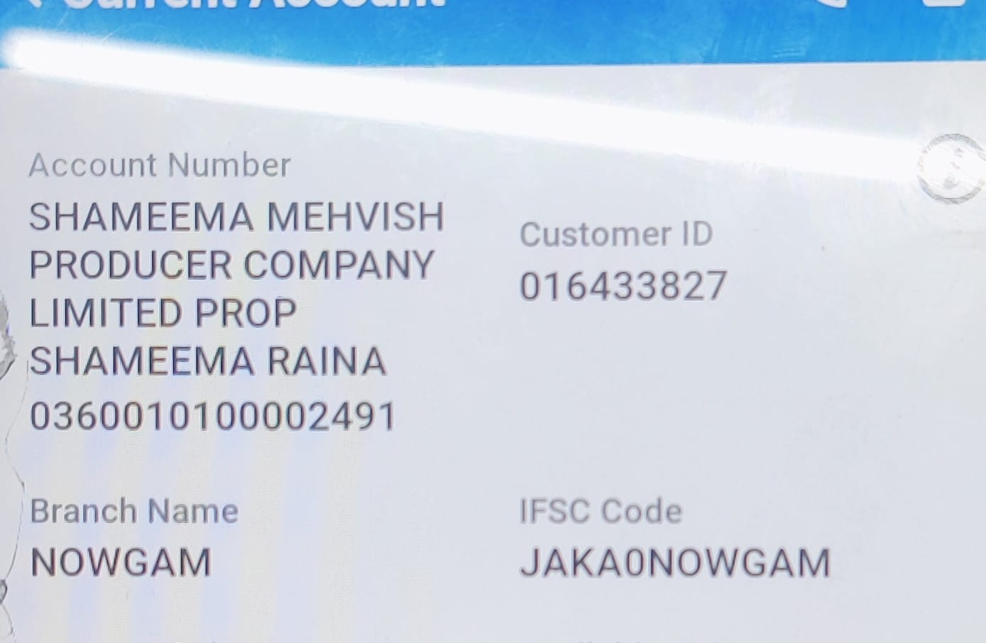 | Account Holder Name | Shameema Mehvish Producer Company Limited |