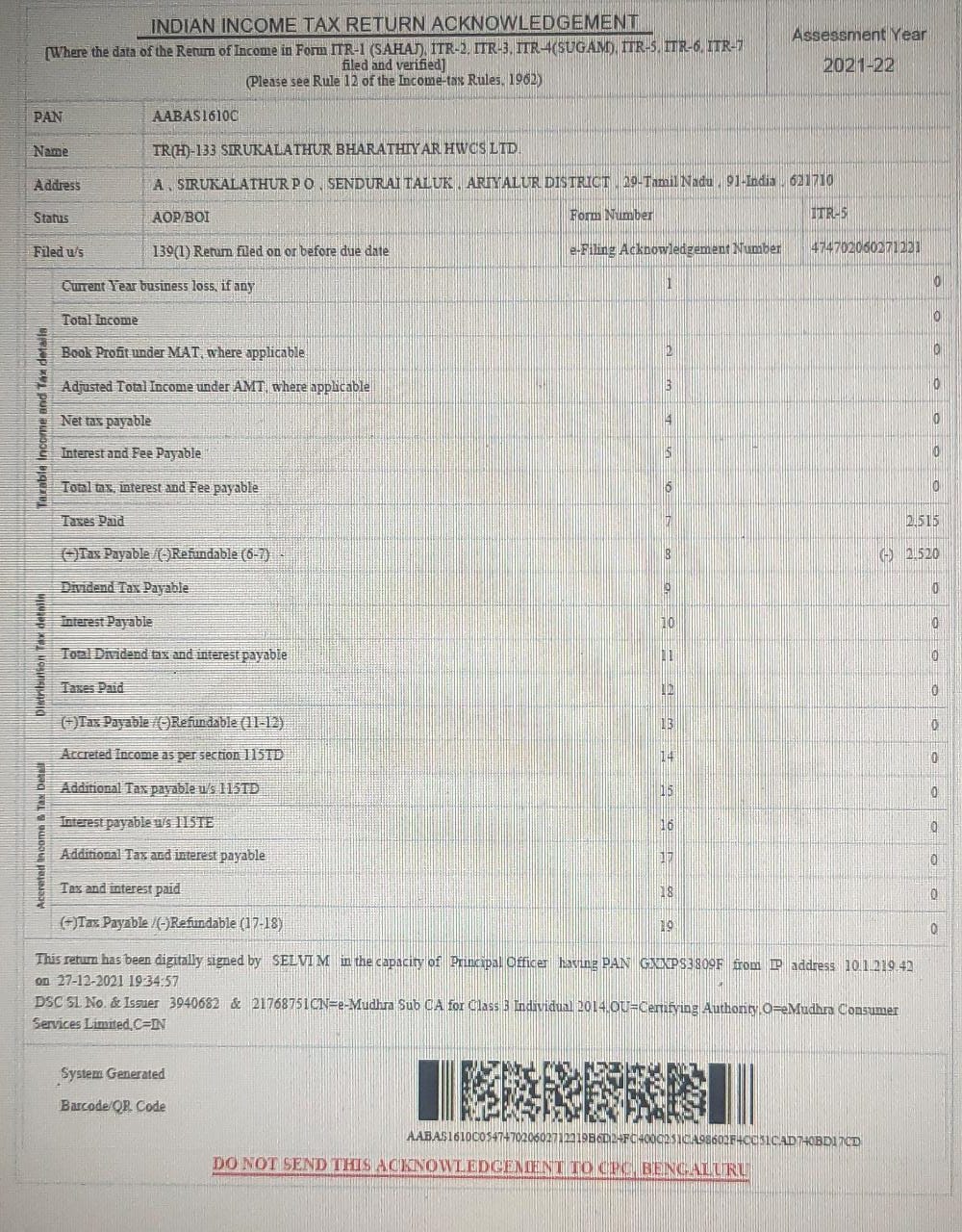 | Taxpayer Type | Regular |