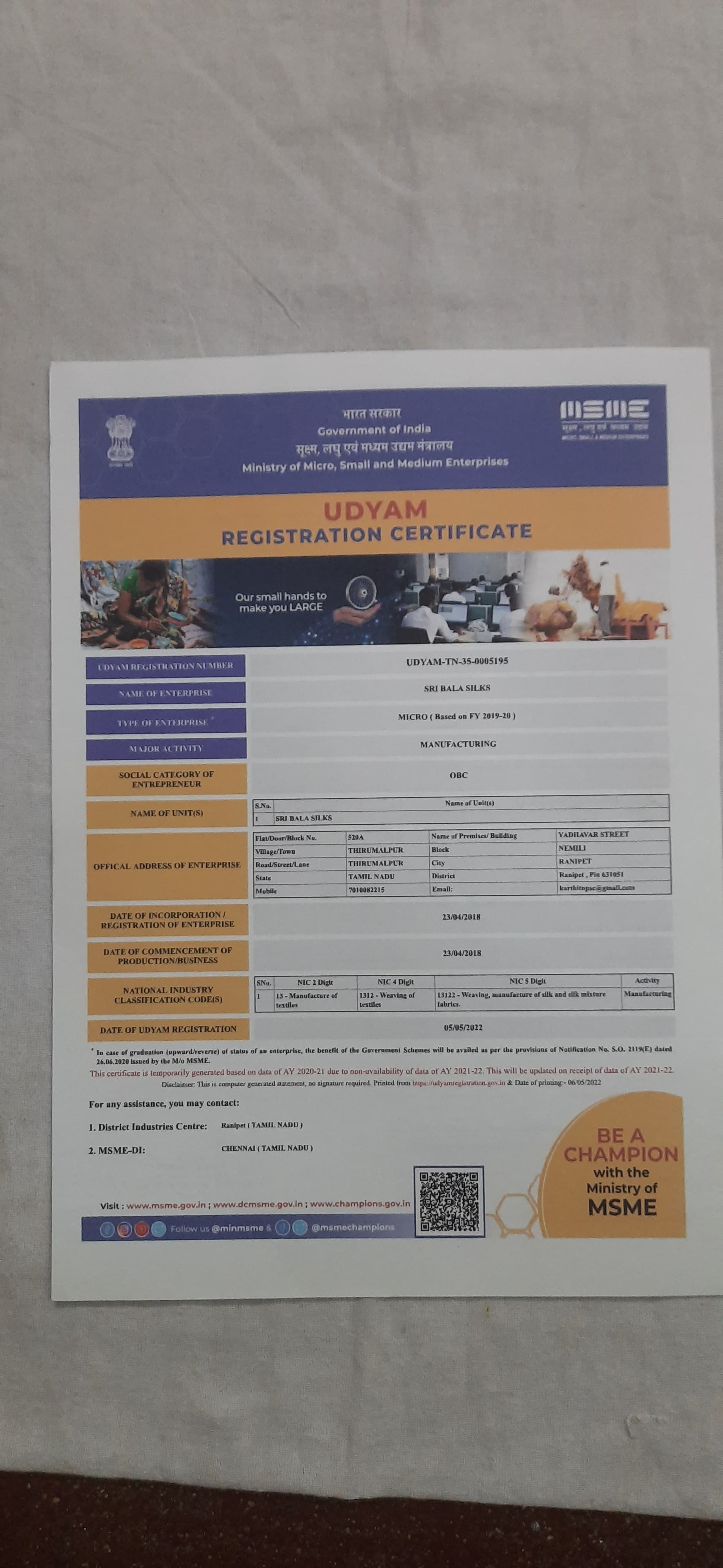 | Organization Registration ID | UDYAM-TN-35-0005195 |