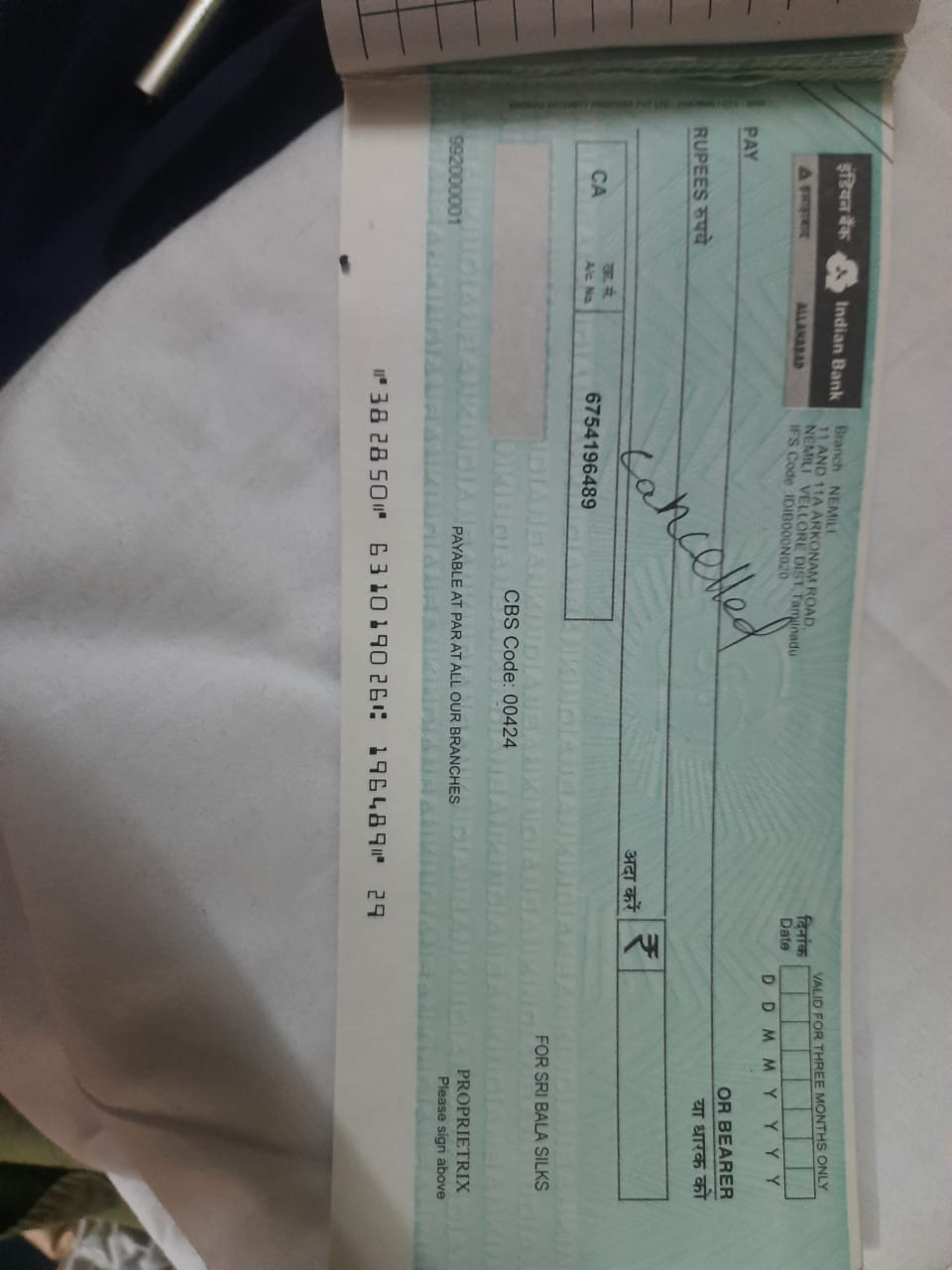 | Account Holder Name | SRI BALA SILKS |