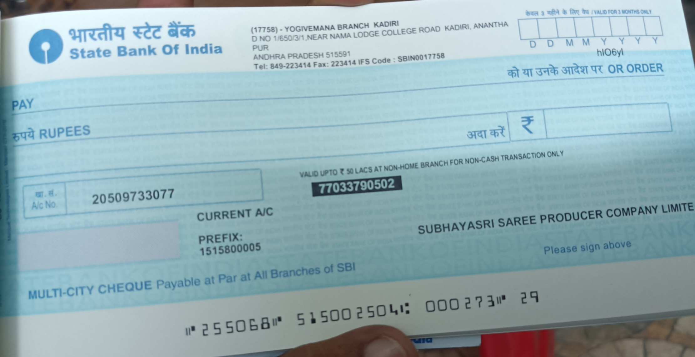 | Account Holder Name | Subhayasri sareeproducer company limited |