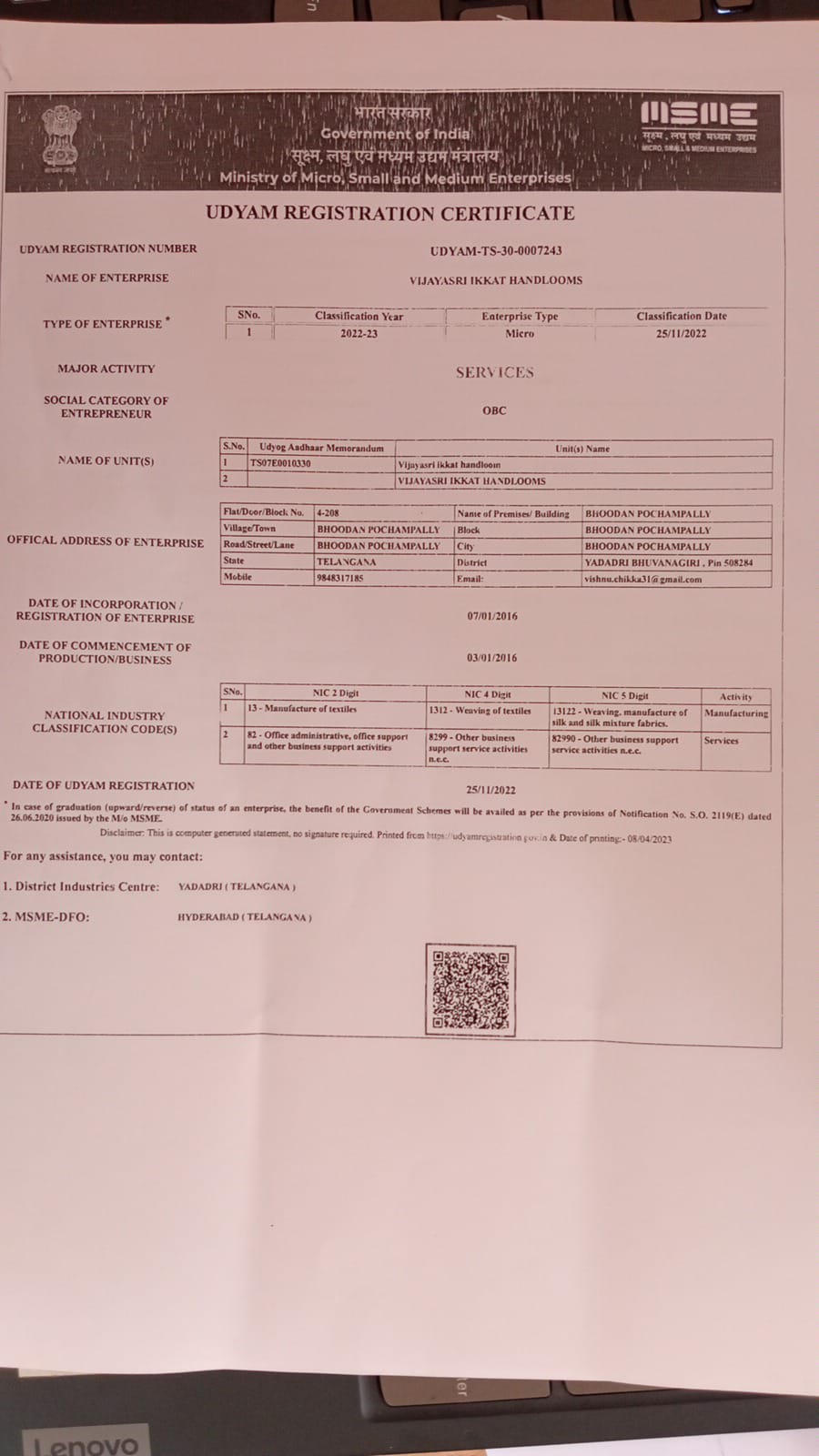 | Seller Name | VIJAYASRI IKKAT HANDLOOMS |