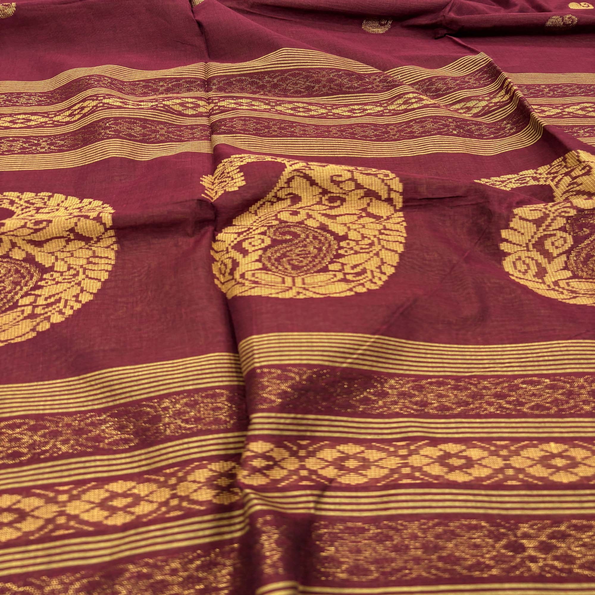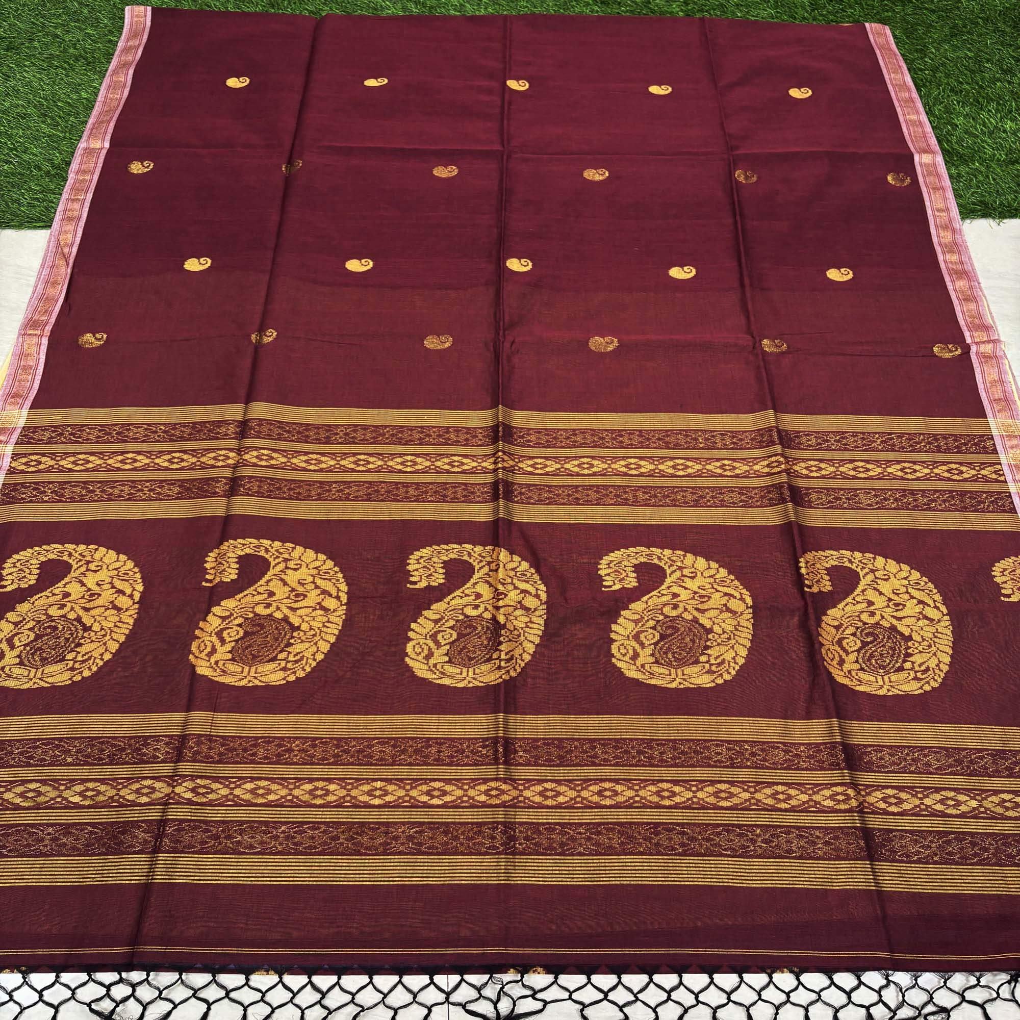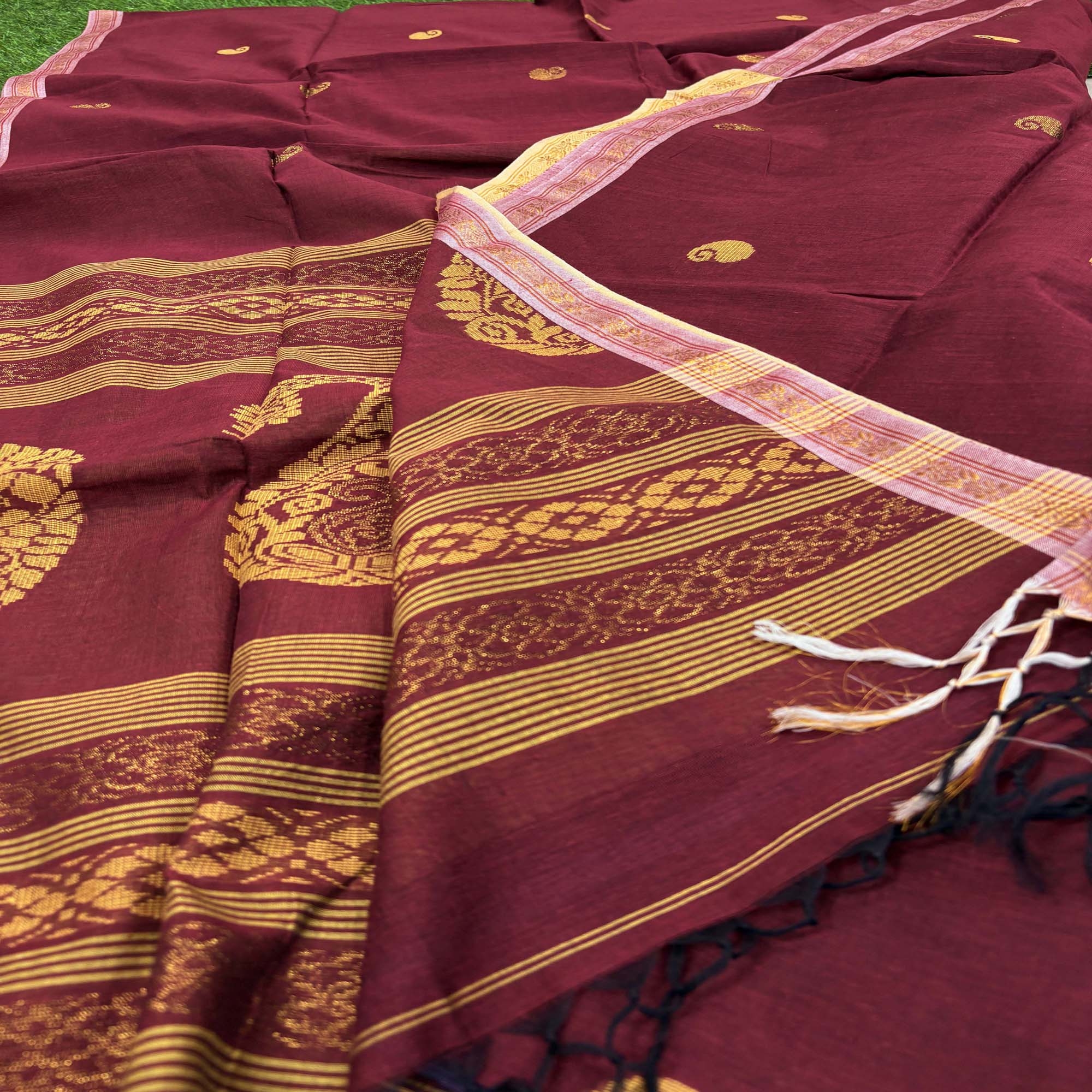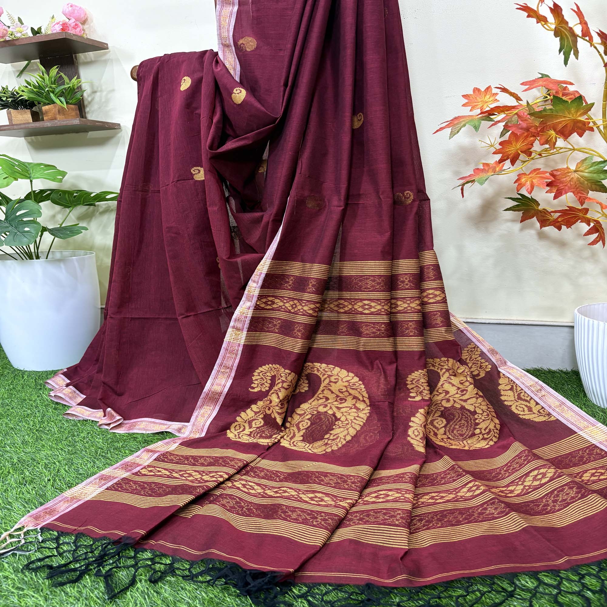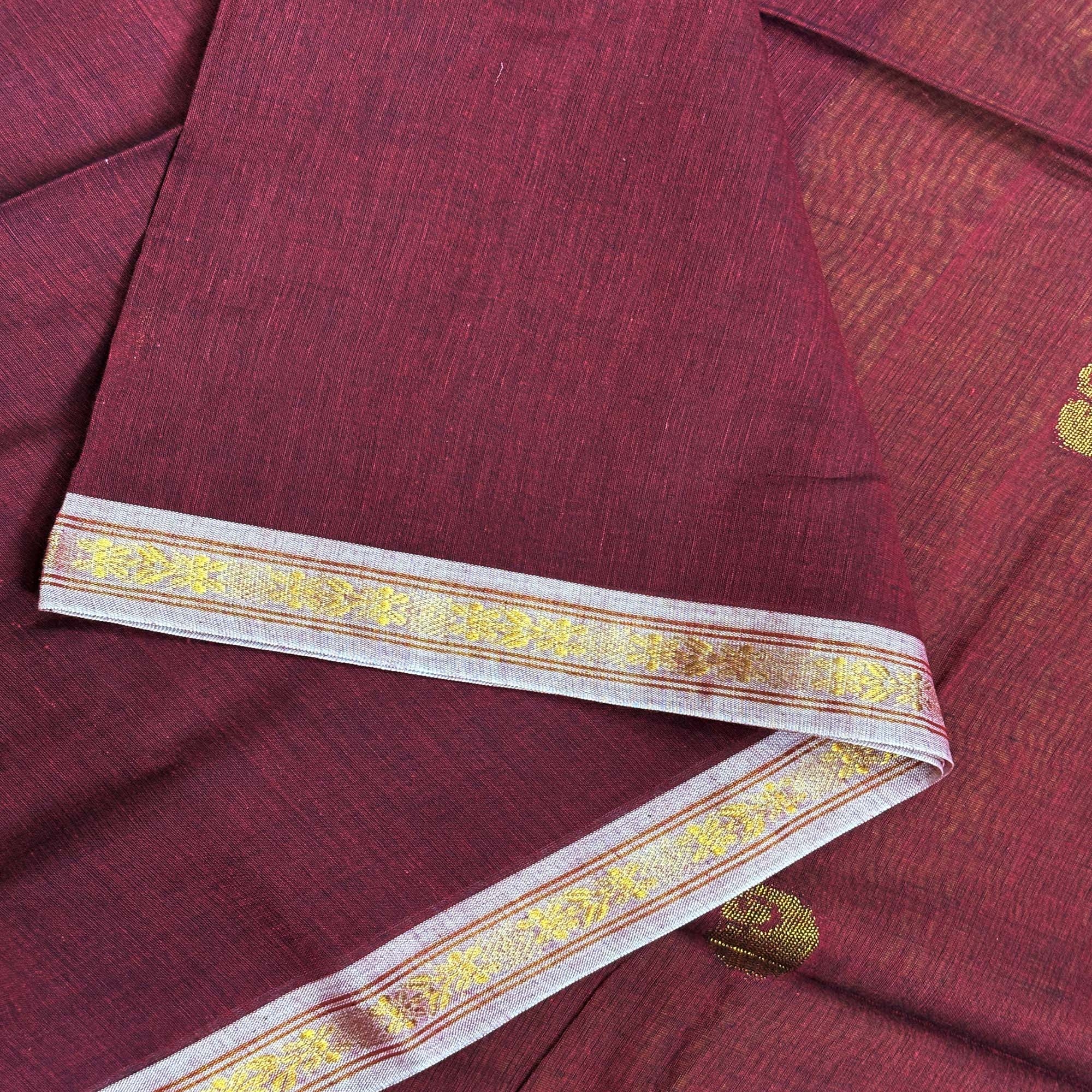 Maroon Handloom Premium Cotton Jamdani Saree