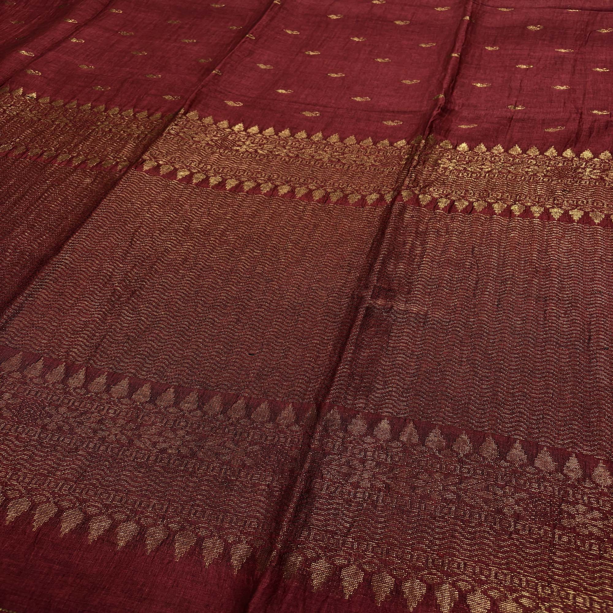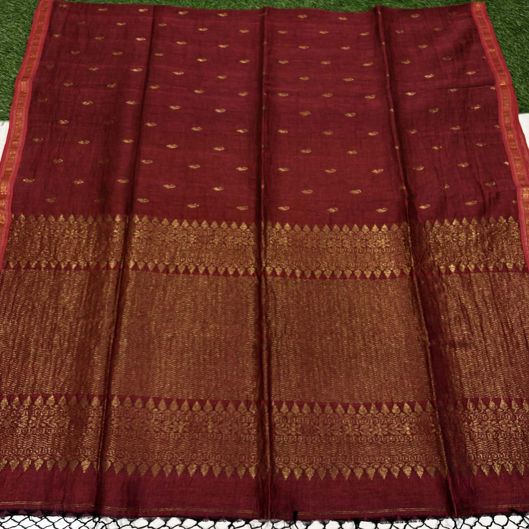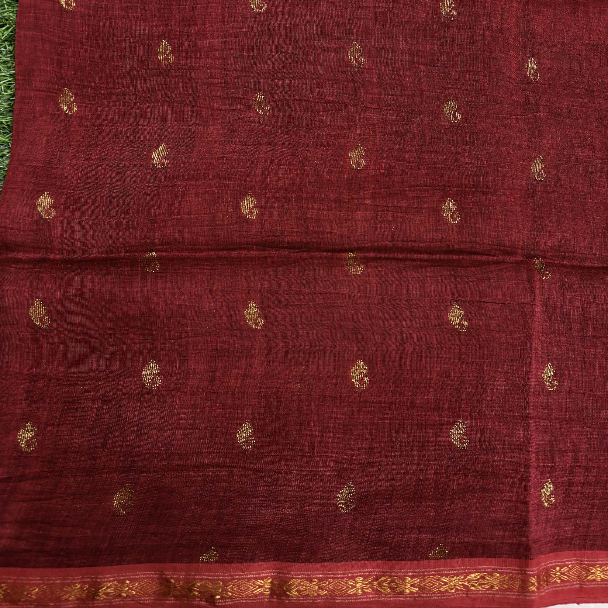 Maroon Paisly Buta Organic Linen Jamdani Saree