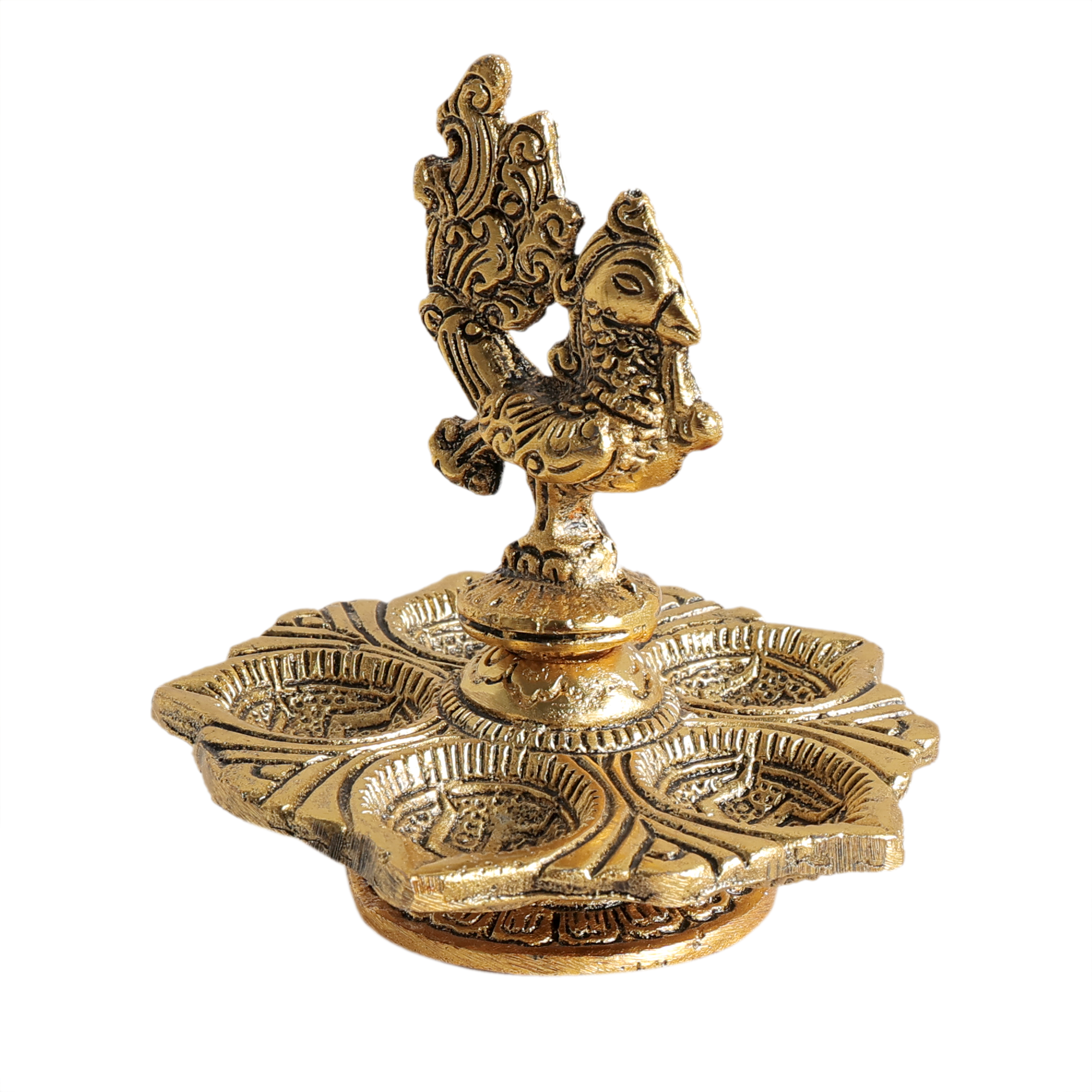 Made from premium quality durable metal, this diya is strong, sturdy, and built for long-lasting use. The attractive peacock detailing enhances its look and makes it a perfect decorative piece for pooja room, temple, living room, balcony, or entrance. When lit with oil or ghee, it creates a warm, peaceful, and divine atmosphere.