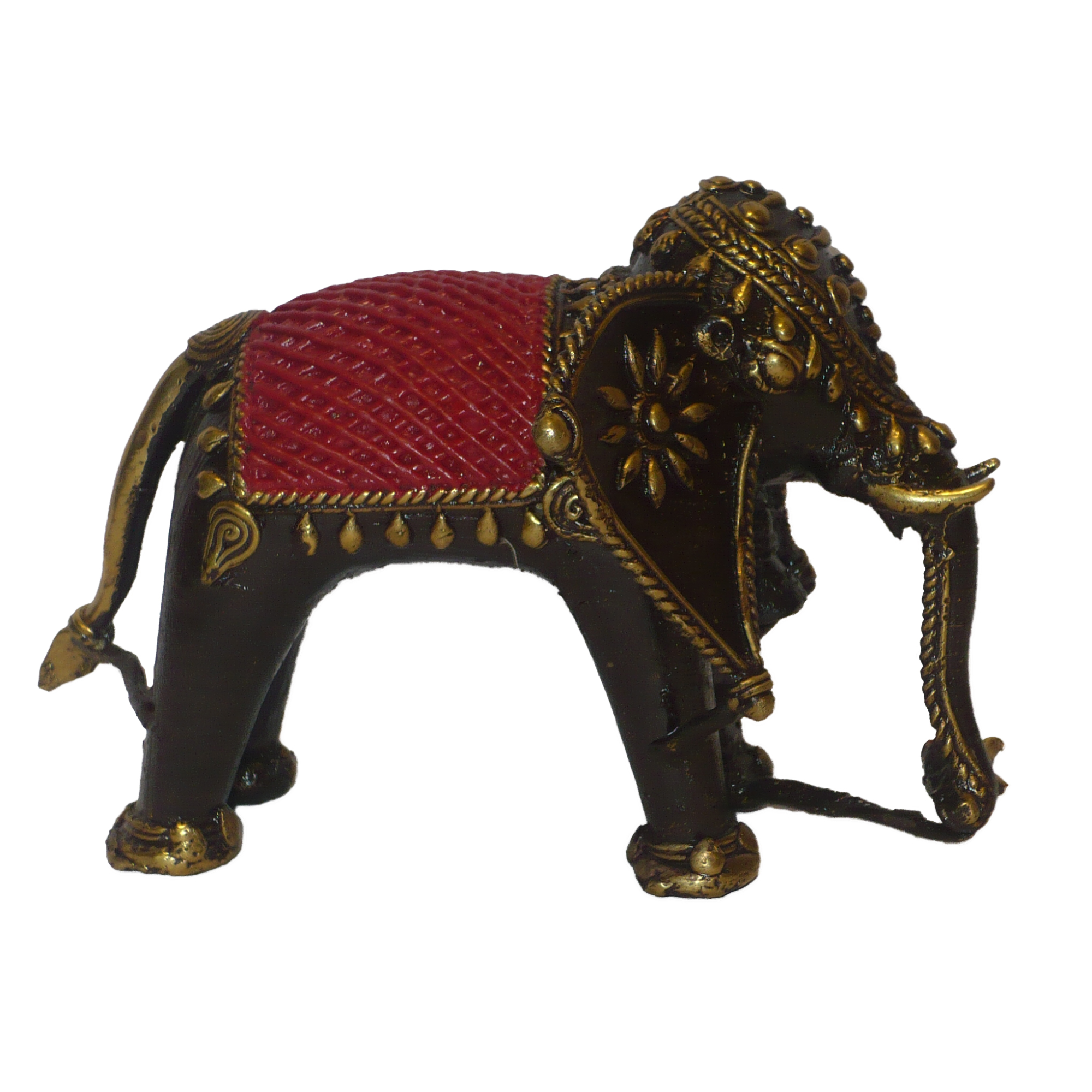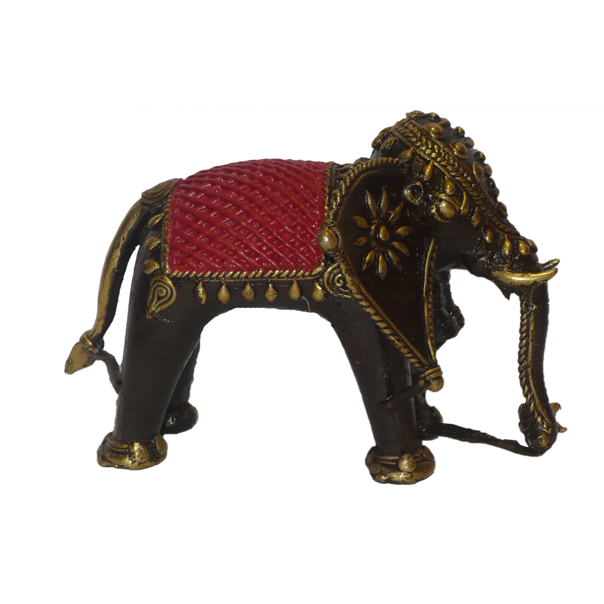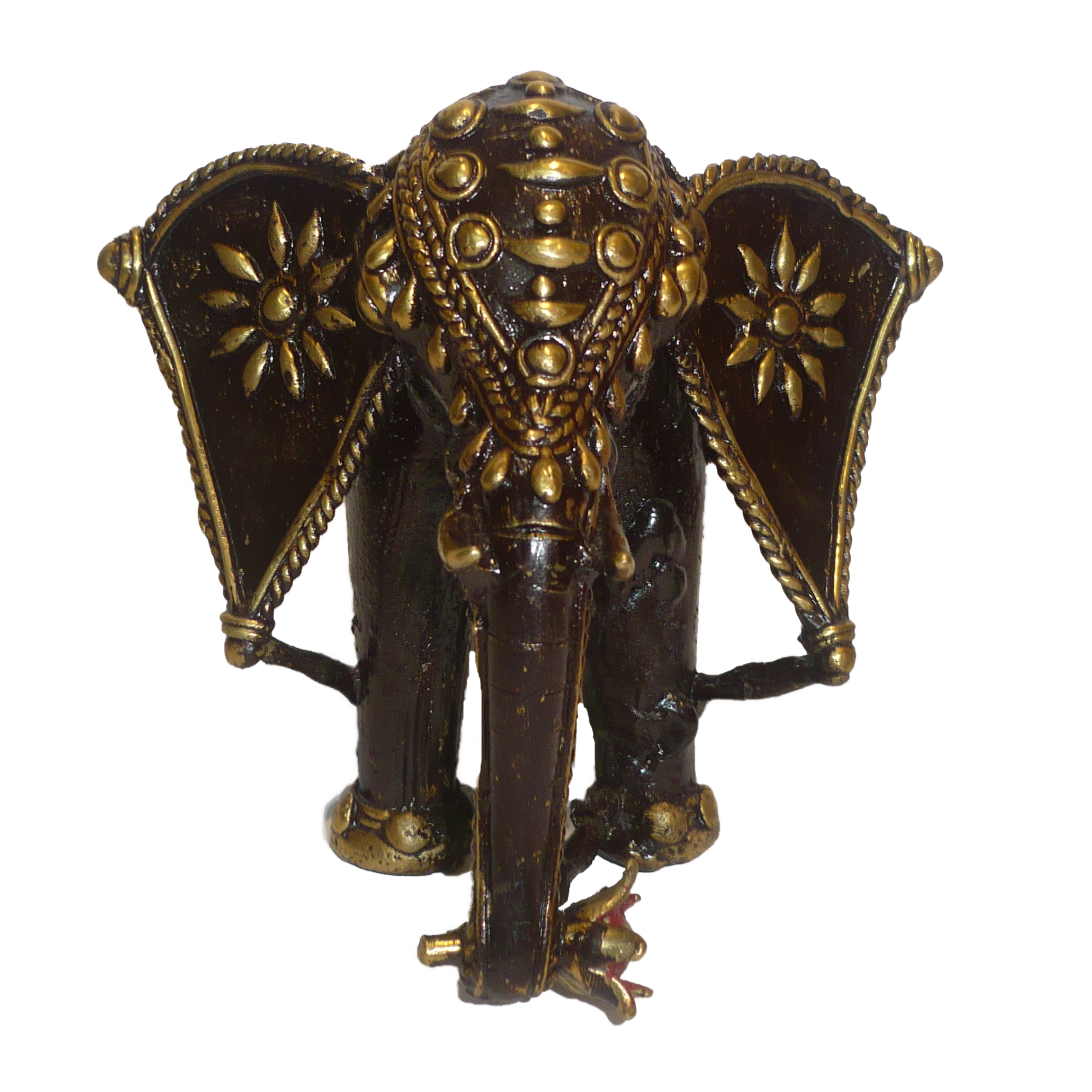 Mid-sized brass elephant figurine with intricate detailing. Durable and stylish, ideal for enhancing your home or office décor.