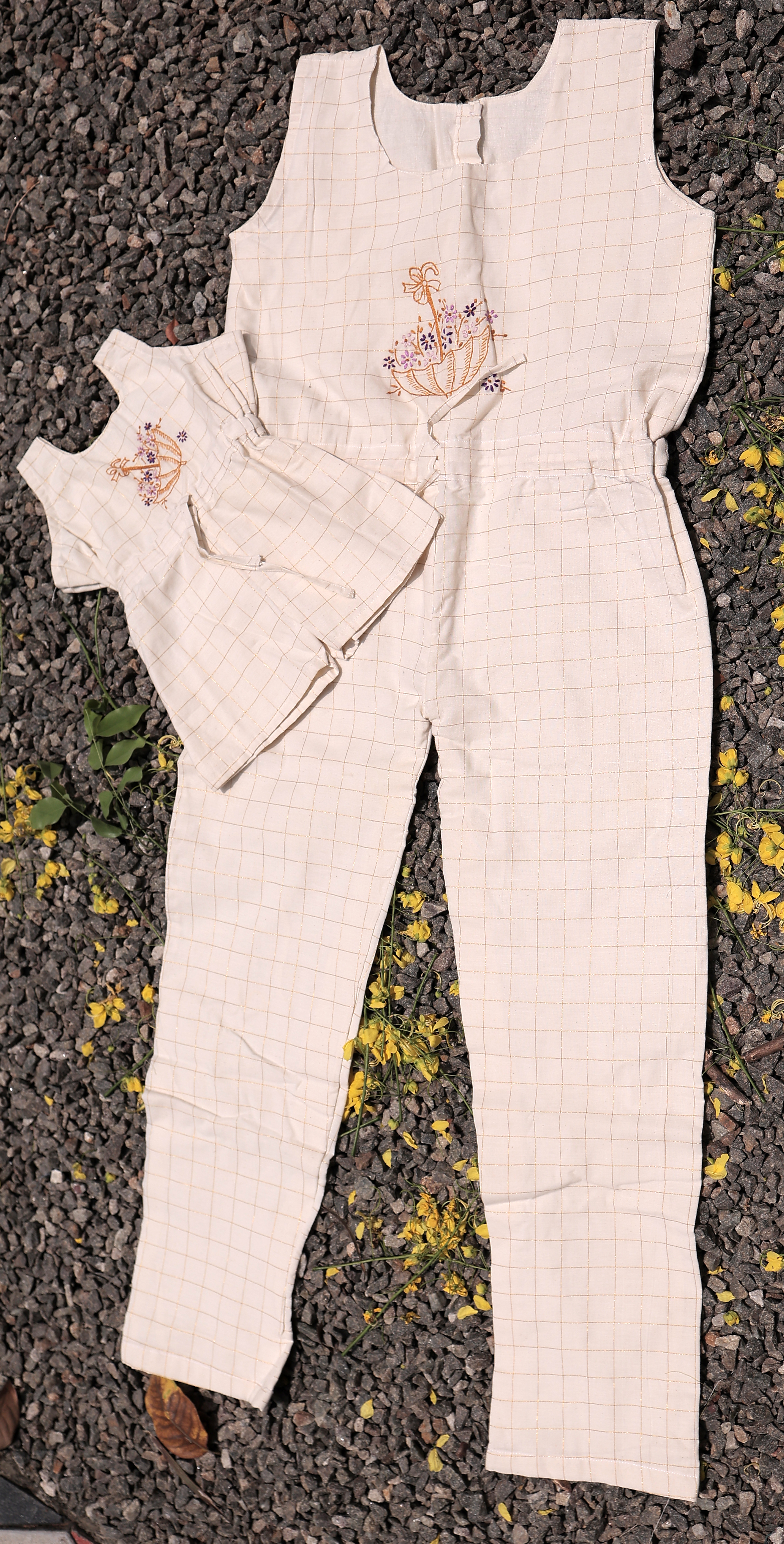 Mom and me jumpsuit with hand embroidery