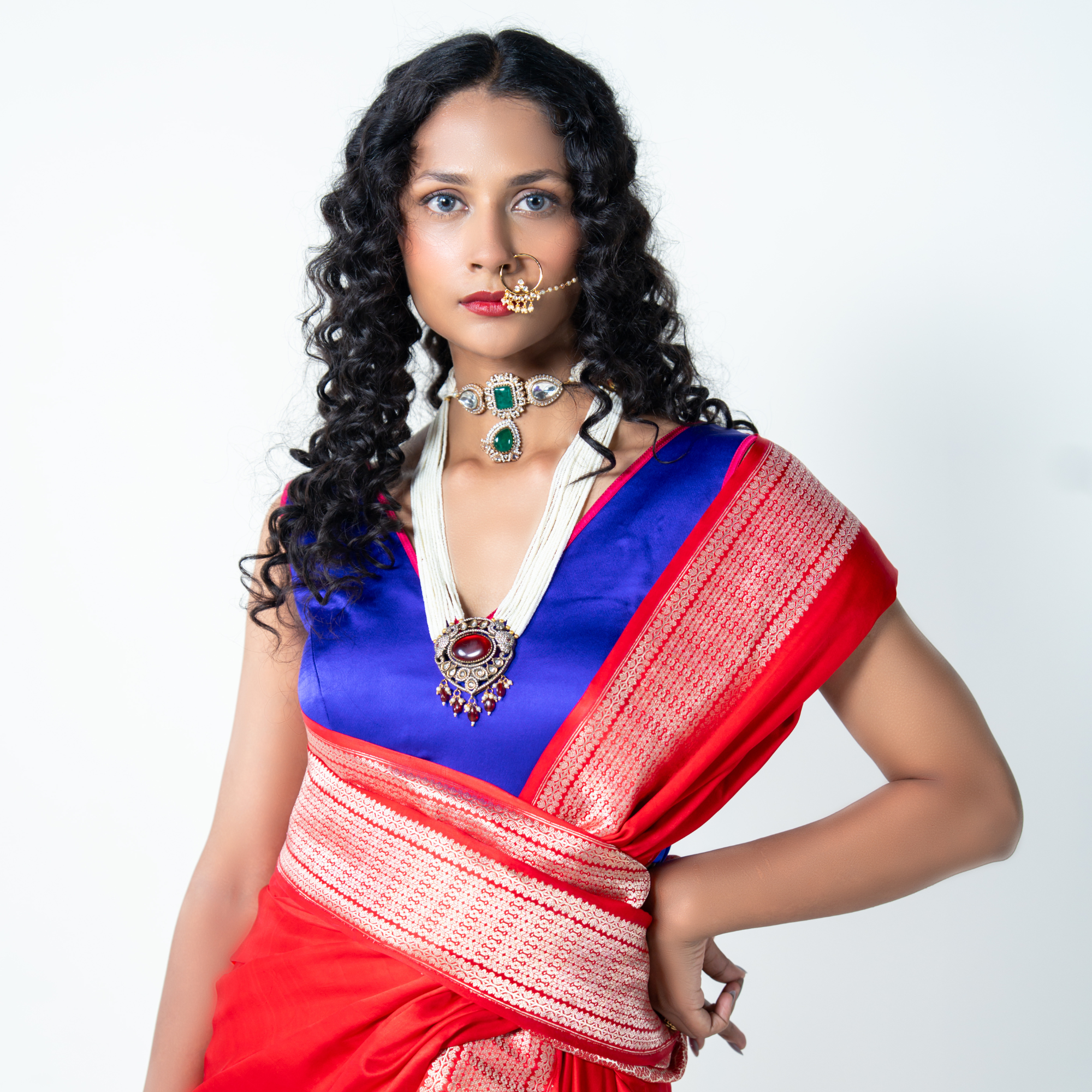 Whether worn by a bride or for a family celebration, Tripti brings grace, charm, and timeless beauty to every occasion. Pair it with gold jewelry and a classic bun adorned with flowers for a regal Indian look.