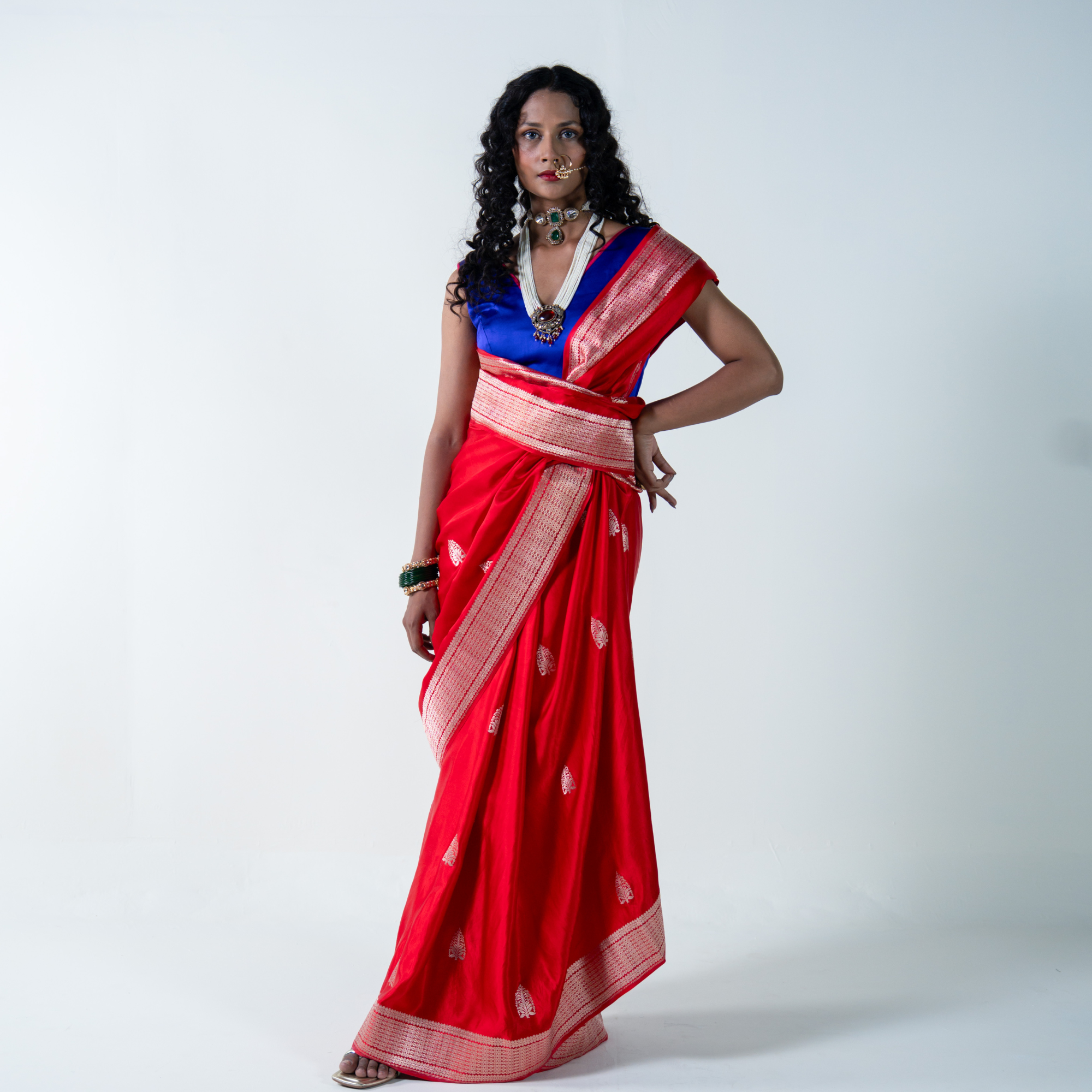 Celebrate tradition and elegance with Tripti – the Red Banarasi Silk Saree. Handwoven in the heritage city of Banaras, this masterpiece features fine golden zari work across a rich red base, making it the perfect choice for weddings, bridal trousseau, and festive occasions. The broad zari pallu, intricate detailing, and luxurious silk drape reflect the artistry of traditional Banarasi weaving.