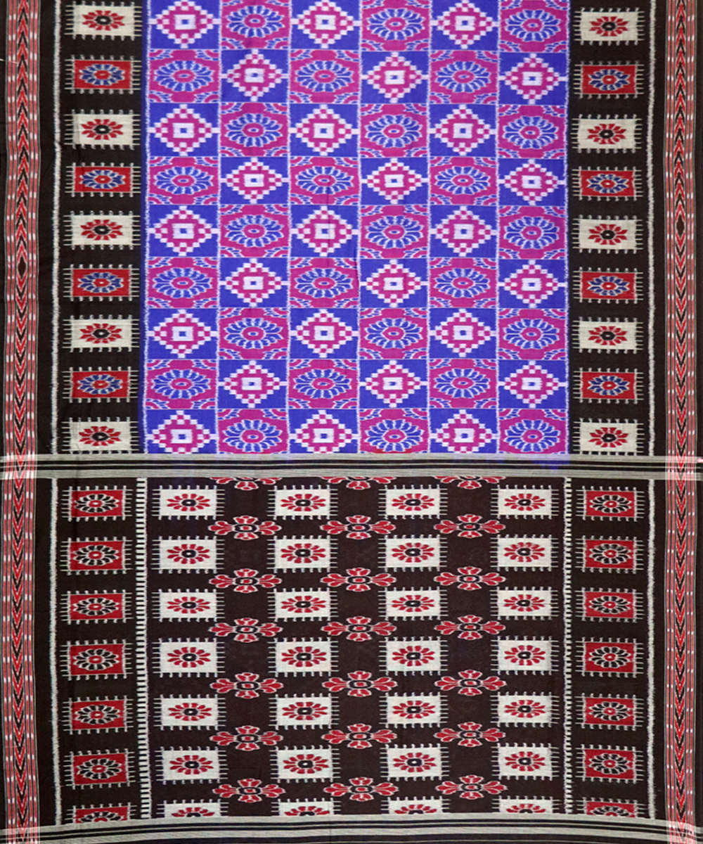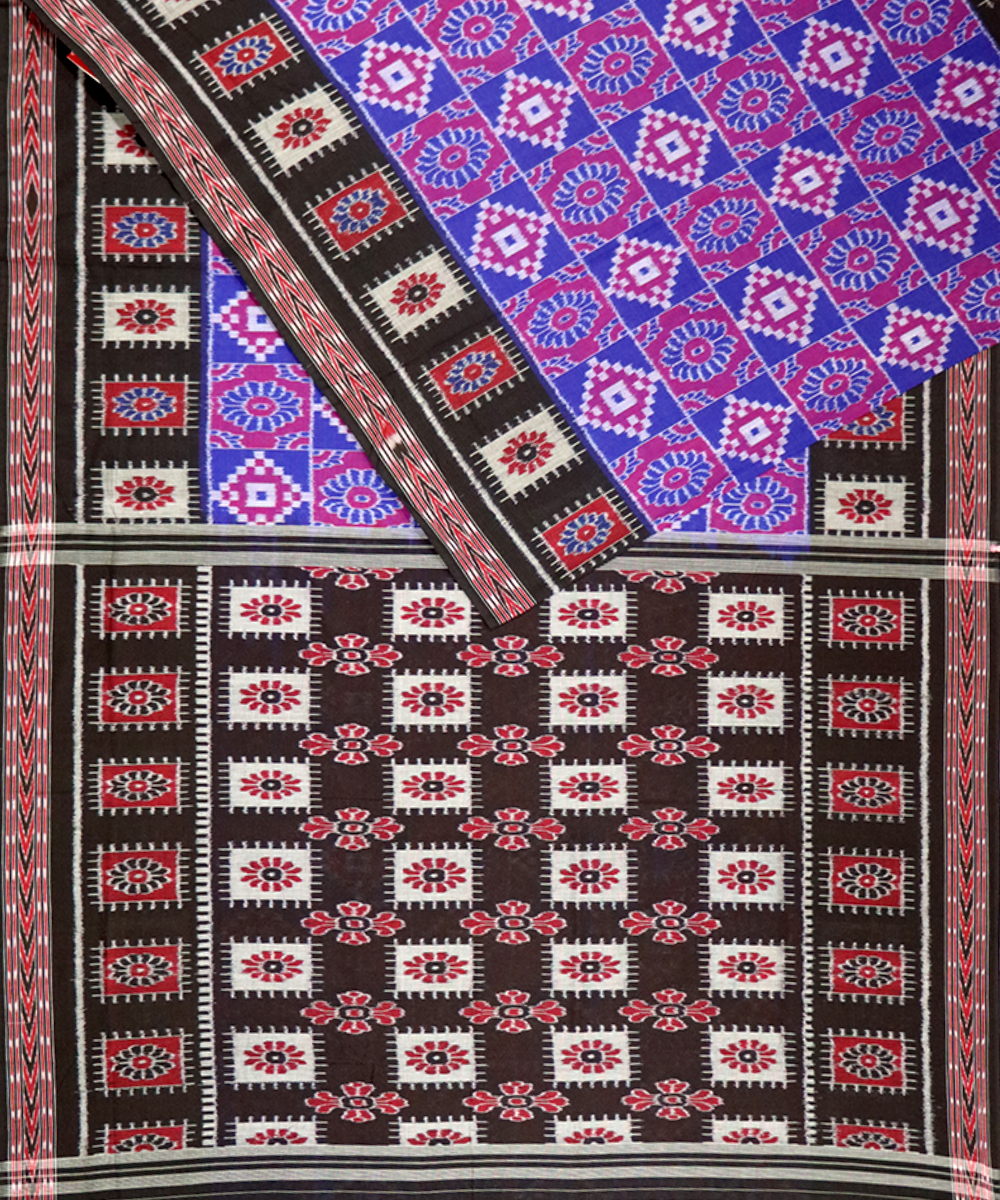 Exclusive Handwoven nuapatna cotton saree multi colour base with Traditional ikat in body & border black base with pasapali ikat & dobby & Pallu black base with traditional ikat ,Saree has Blouse piece.