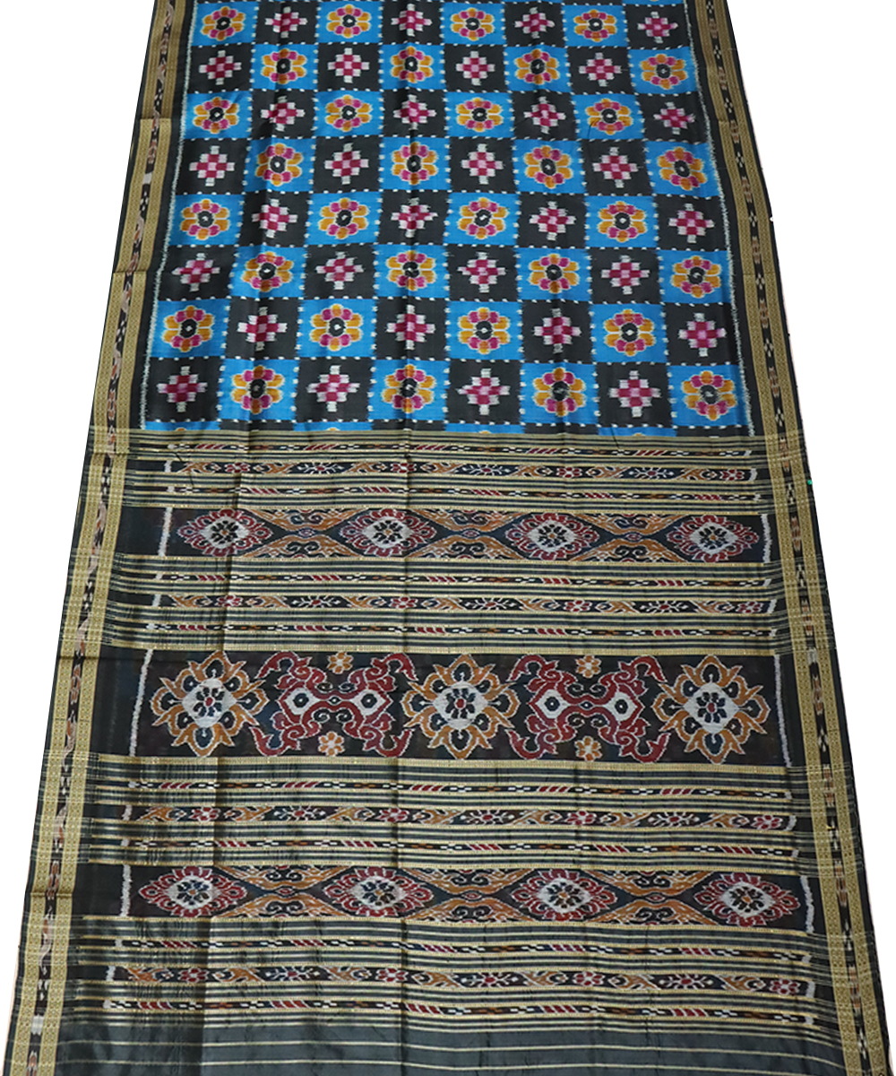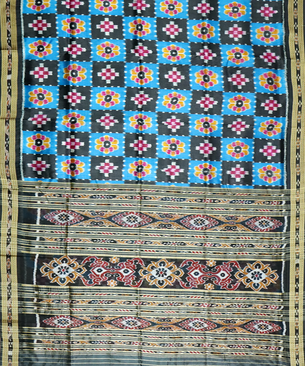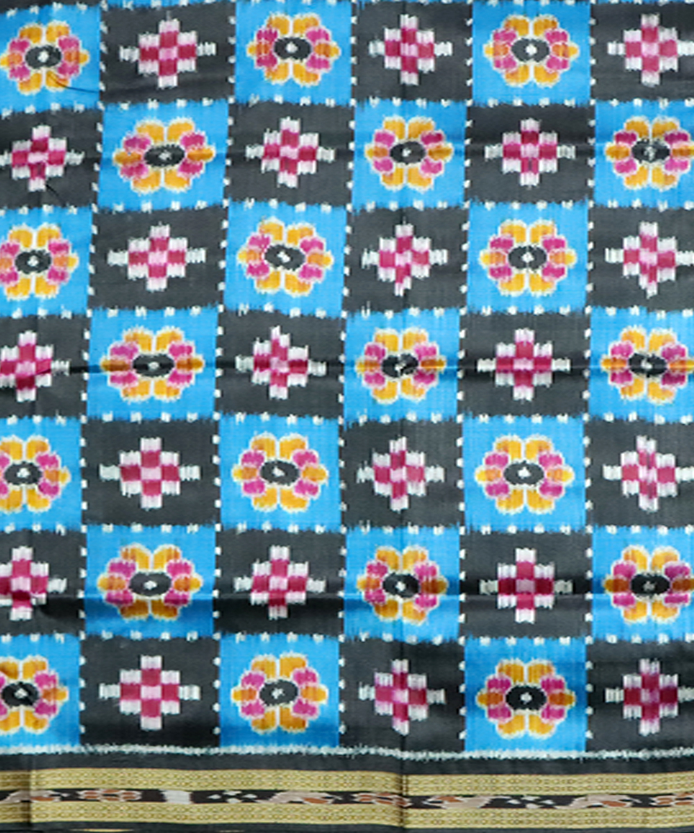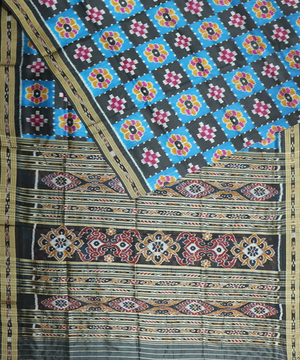 Handwoven traditional Khandua silk saree multicolour base Ikat in body & border black base with traditional ikat & Pallu black base with traditional ikat