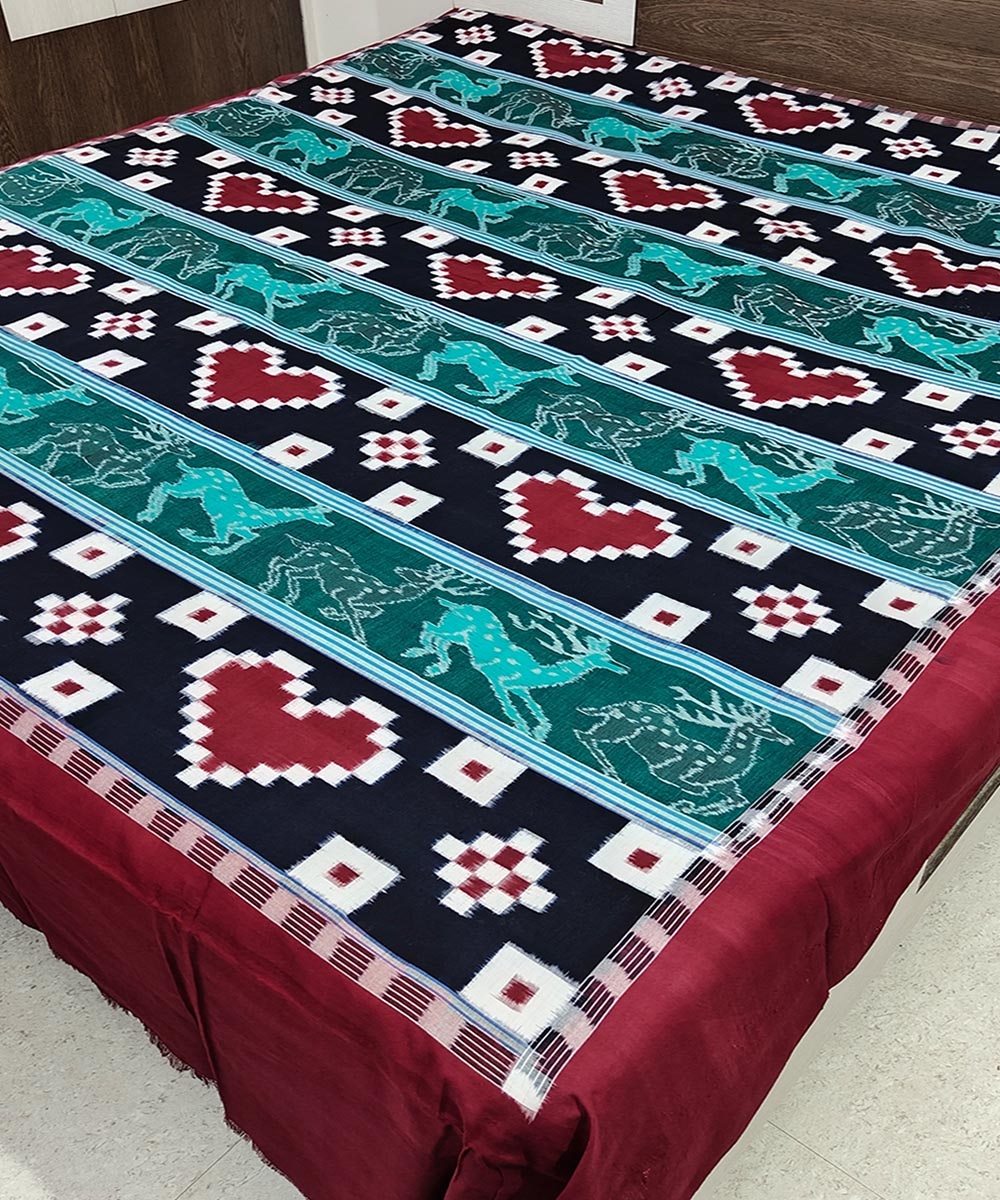 Multicolour Sambalpuri Handwoven Cotton Double Bed Sheet SMCBED1279