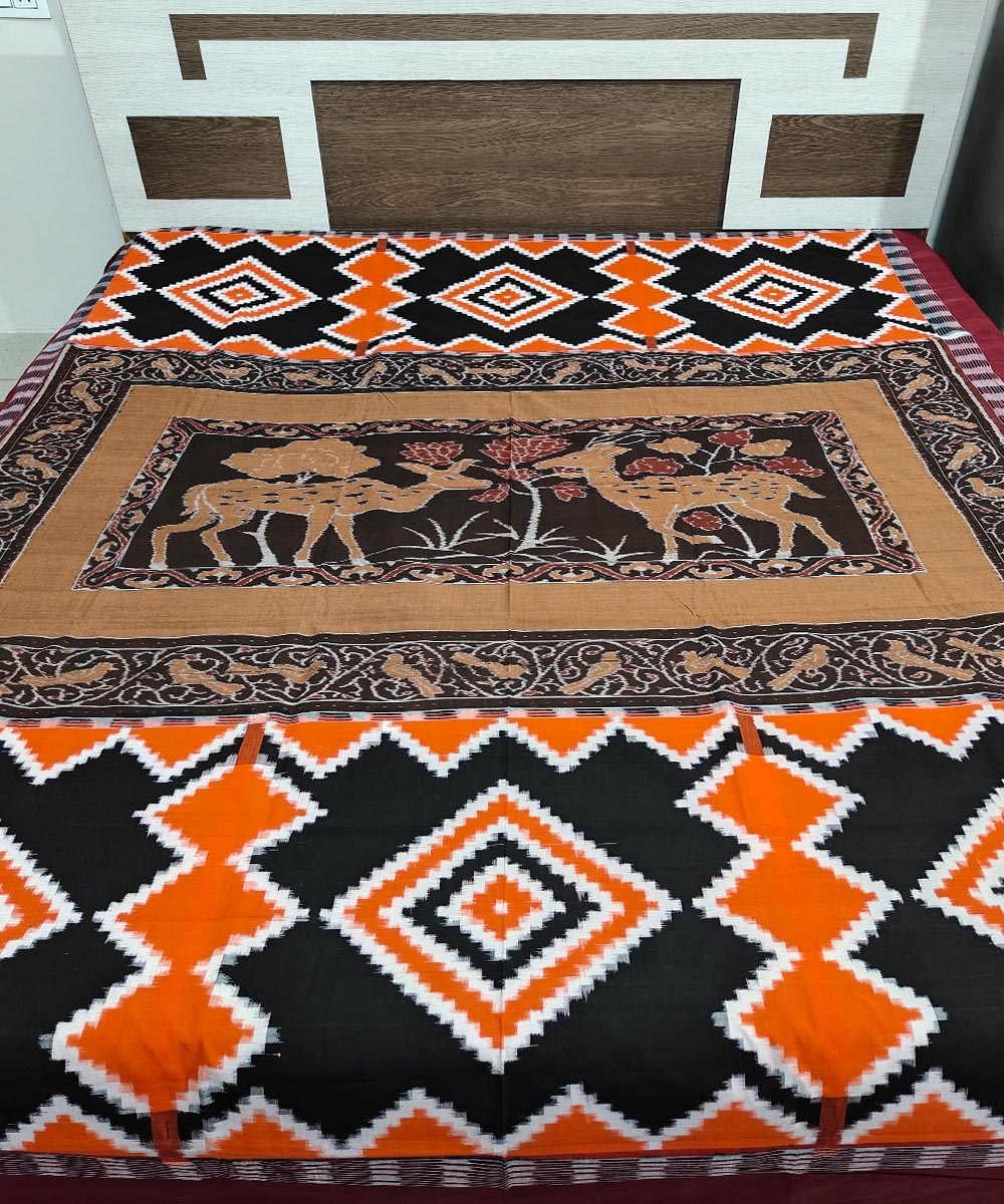 Multicolour Sambalpuri Handwoven Cotton Double Bed Sheet SMCBED1280
