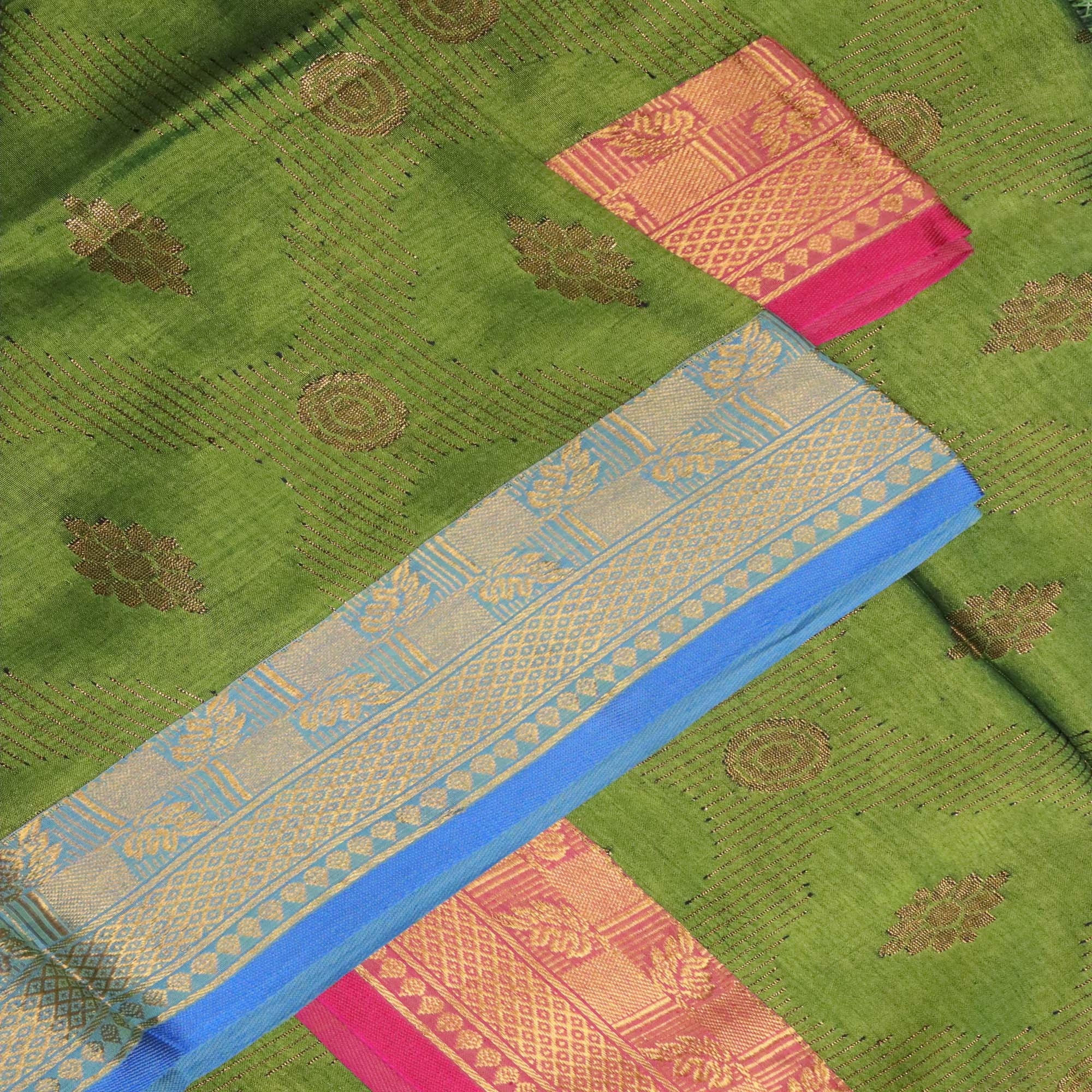 Neon Green Bengal Handloom Katan Silk Zari Emboss Saree