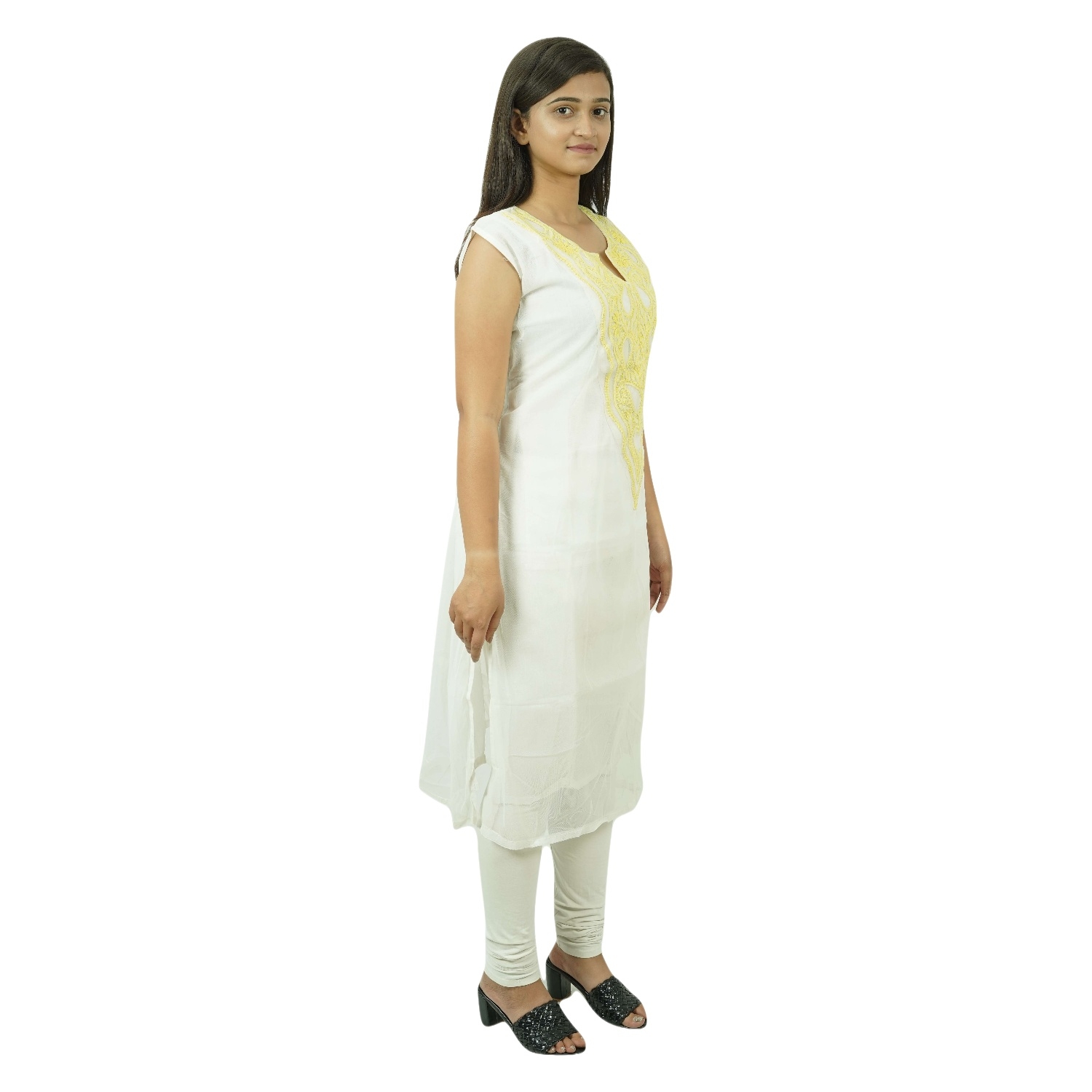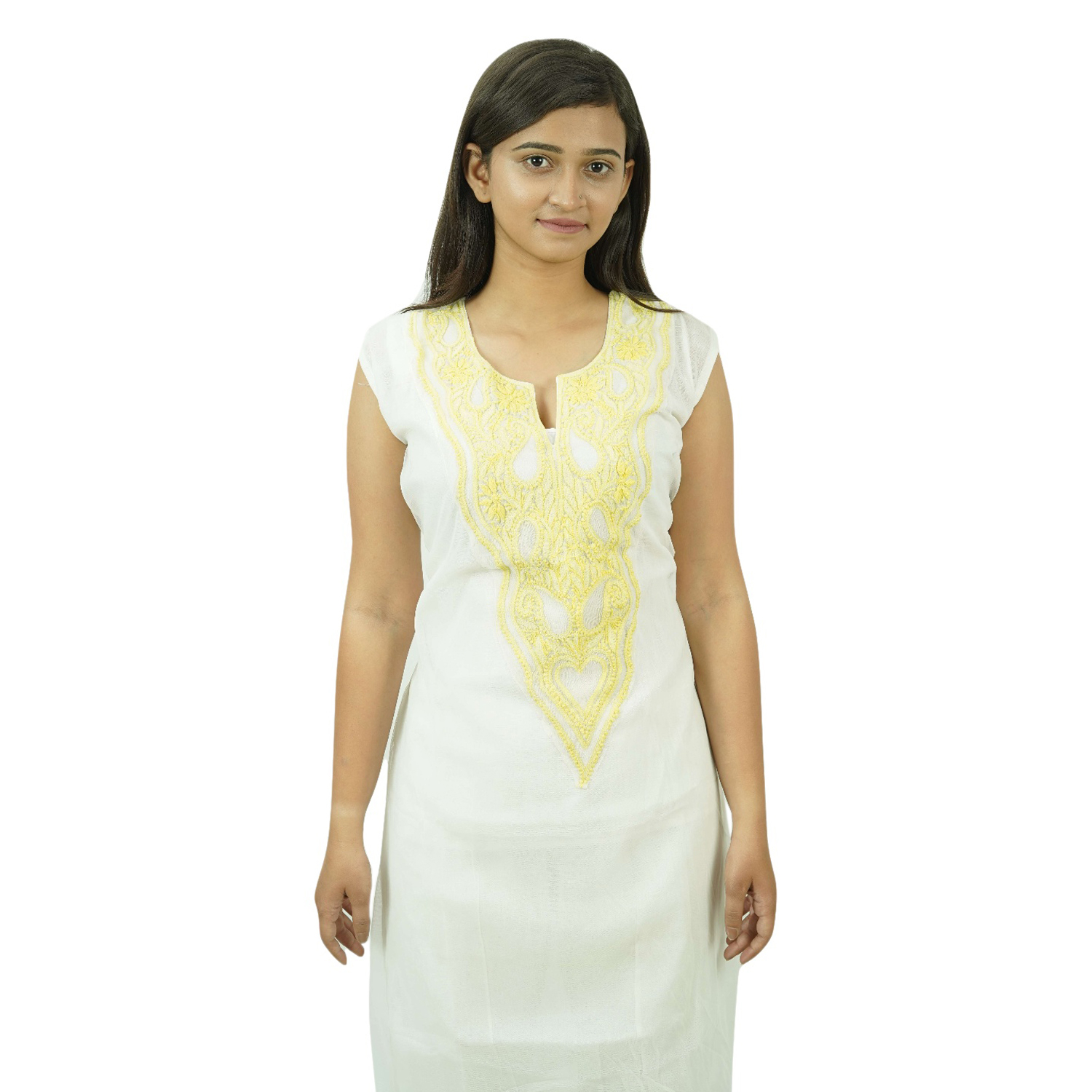 The chikan kurti is a traditional outfit that brings together classic embroidery techniques with contemporary designs, making it a popular choice for women who appreciate the beauty of intricate detailing and intricate artistry. Crafted from fine quality cotton and adorned with delicate floral motifs, this kurti is an elegant and timeless addition to any wardrobe.