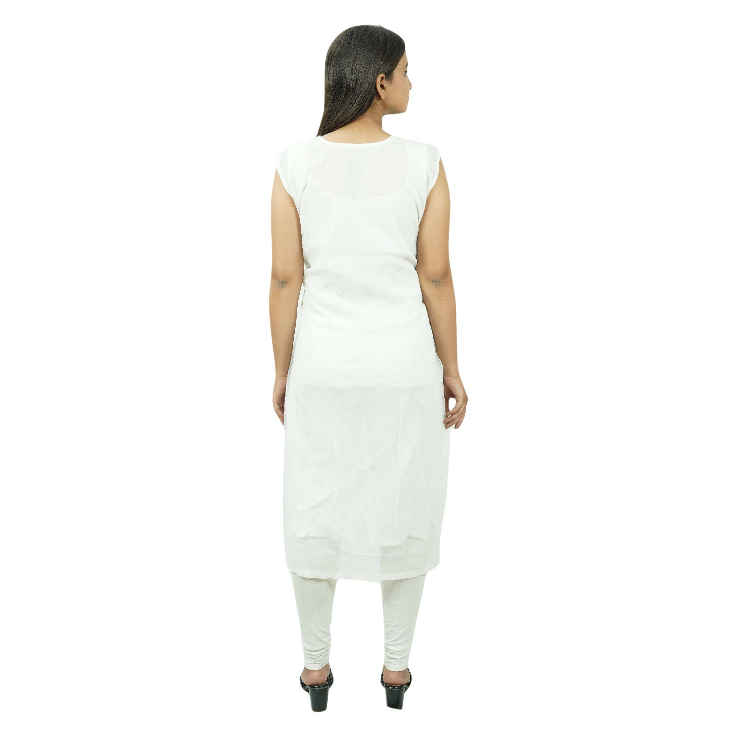 The White Georgette Chikankari Kurti is a beautiful and elegant kurti that is handcrafted in India. It is made from fine-quality cotton and is adorned with delicate floral motifs. The kurti is perfect for any occasion, from a casual day out to a formal event.
