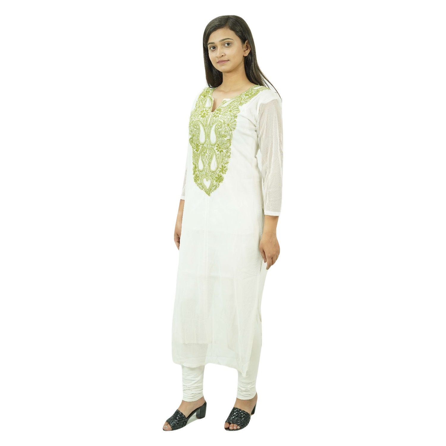 Our Chikankari Kurti is meticulously handcrafted by skilled artisans using the age-old technique of Chikankari, originating from the heart of Lucknow.