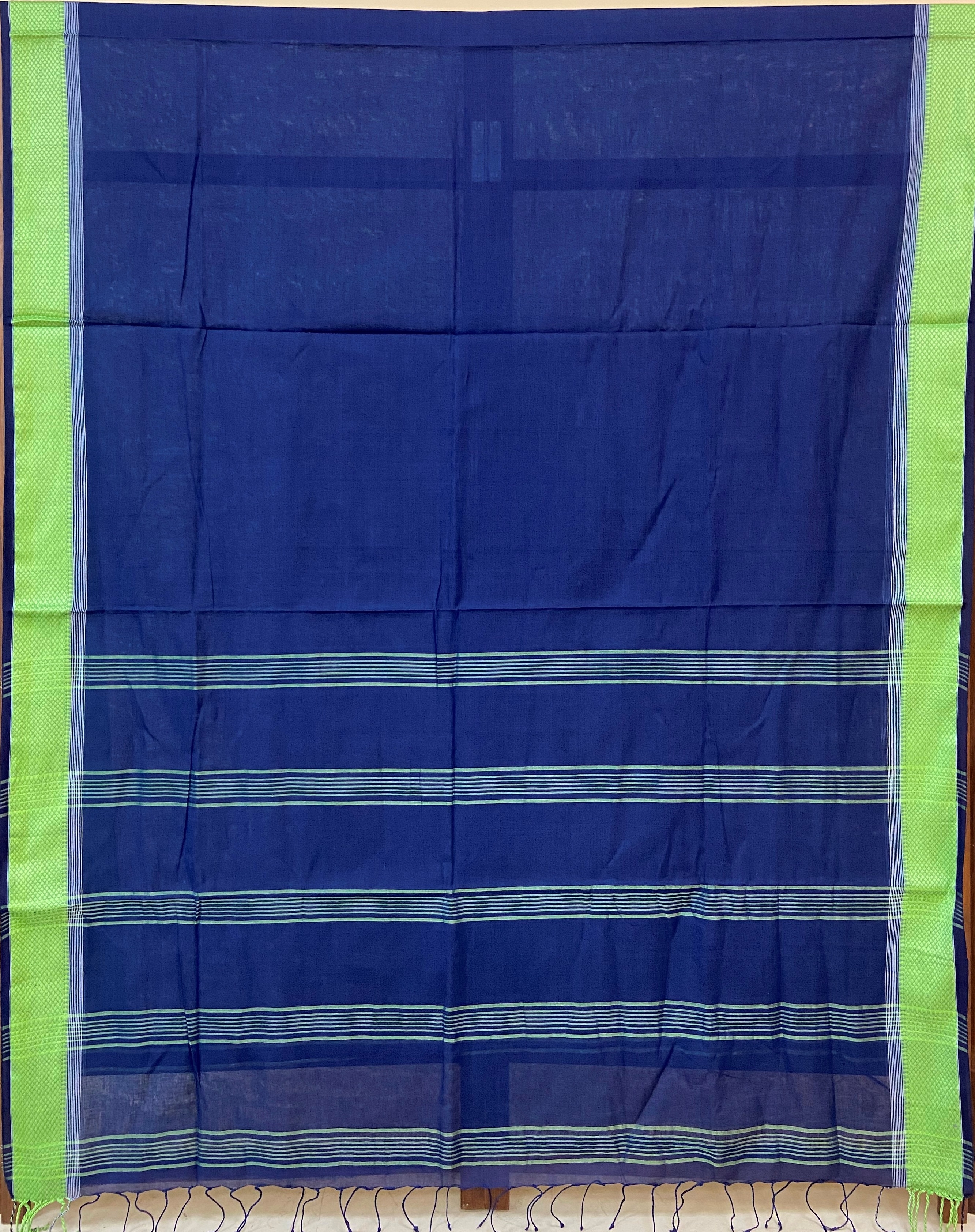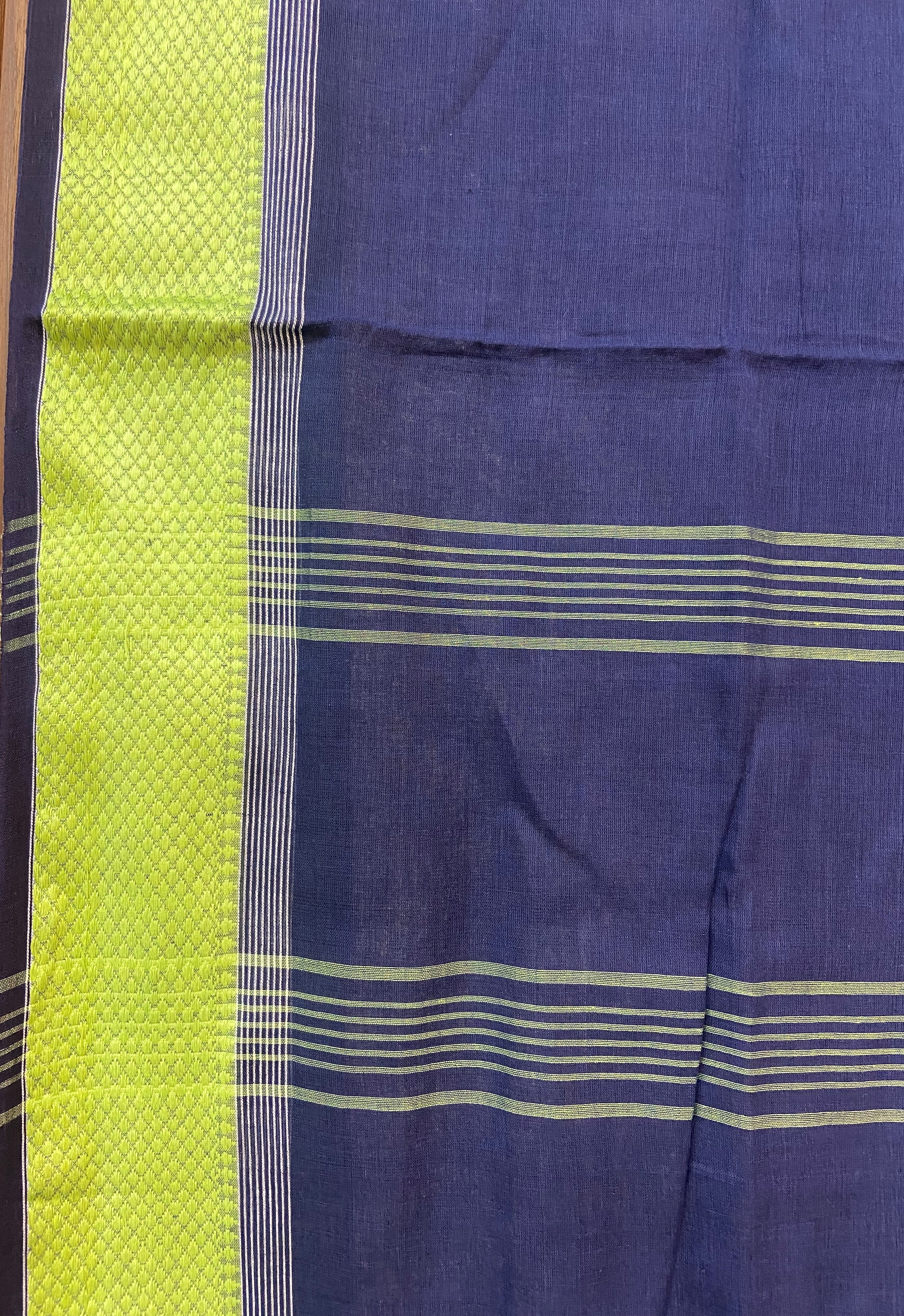 Traditional Nilambari Cotton Santipuri saree with soft handfeel, made with 100% cotton yarn