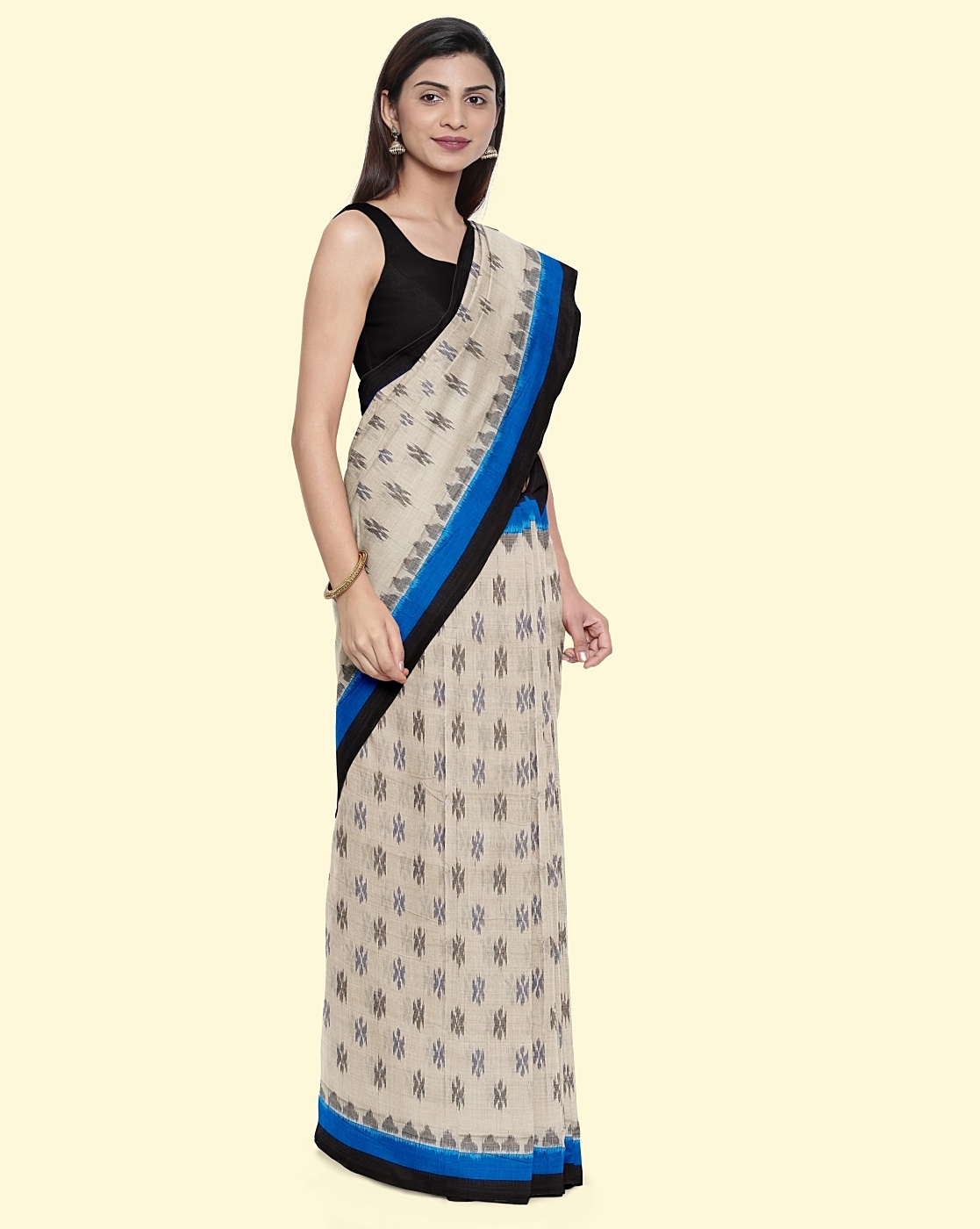 Offwhite Blue Sambalpuri Handwoven Single Ikat Cotton Saree SFCSARAJ86