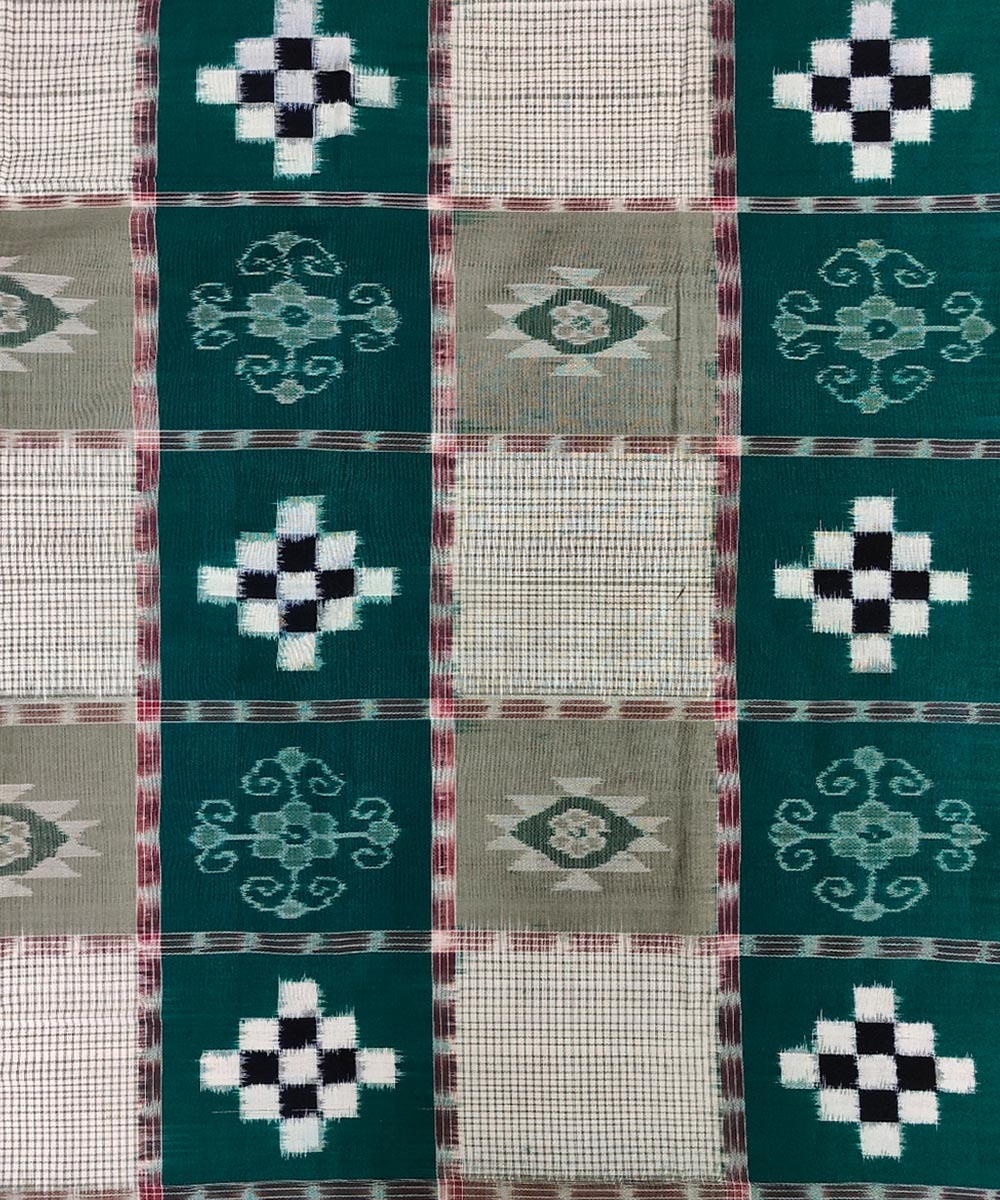 Offwhite Green Sambalpuri Handwoven Cotton Double Bed Sheet SMCBED1277