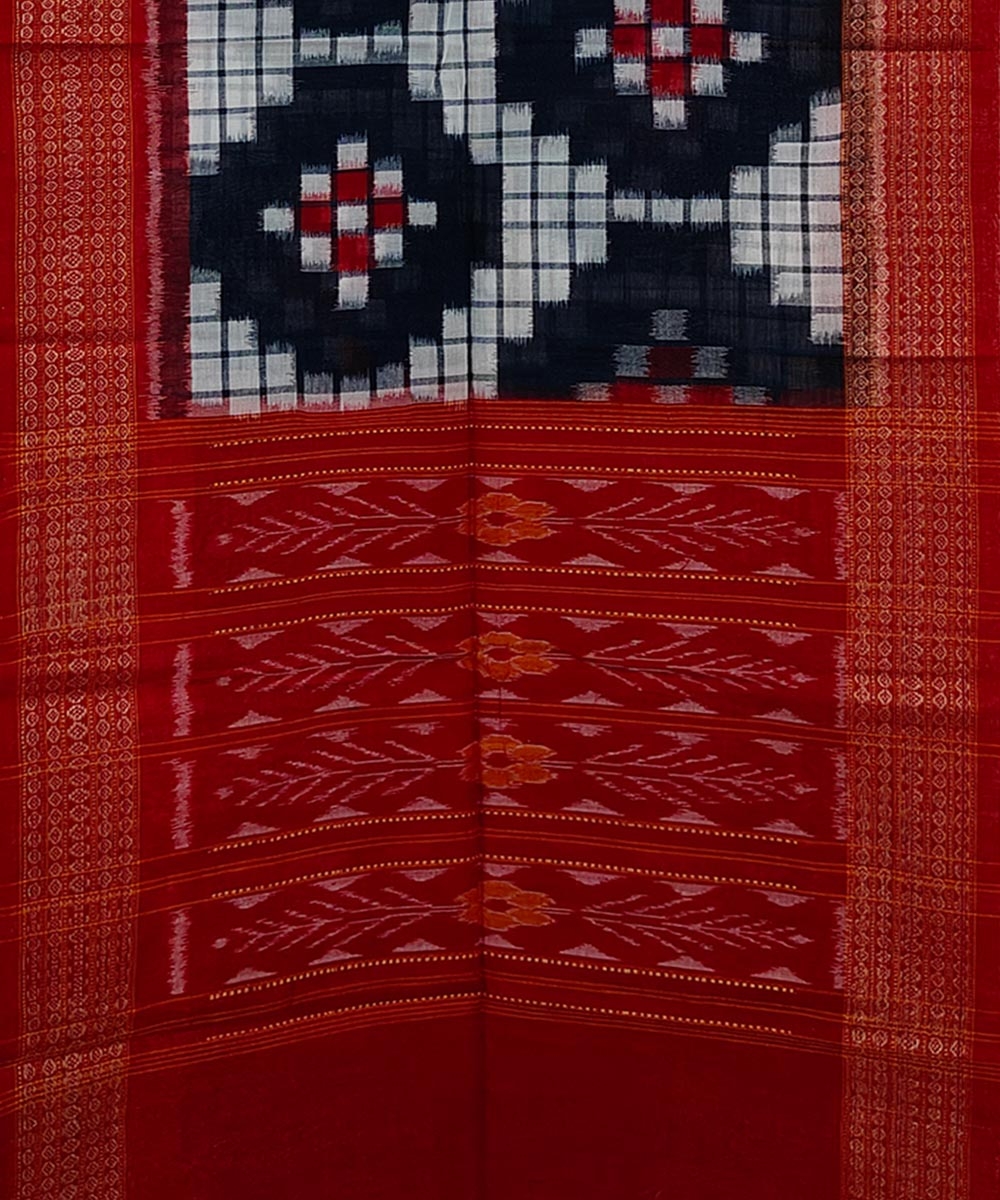 Offwhite Red Sambalpuri Handwoven Double Ikat Cotton Stole SFCSTL1690