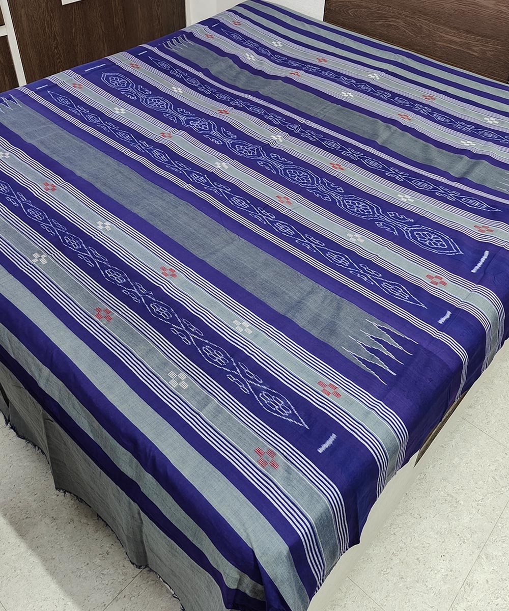 Olive Sambalpuri Handwoven Cotton Double Bed Sheet SMCBED1288