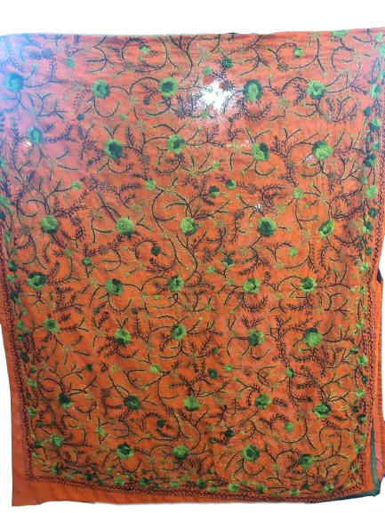 Phulkari (Punjabi: ਫੁਲਕਾਰੀ) refers to the folk embroidery of the Punjab. Although Phulkari means floral work, the designs include not only flowers but also cover motifs and geometrical shapes.The main characteristics of Phulkari embroidery are use of darn stitch on the wrong side of coarse cotton cloth with coloured silken thread. Punjabi women create innumerable alluring and interesting designs and patterns by their skilful manipulation of the darn stitch