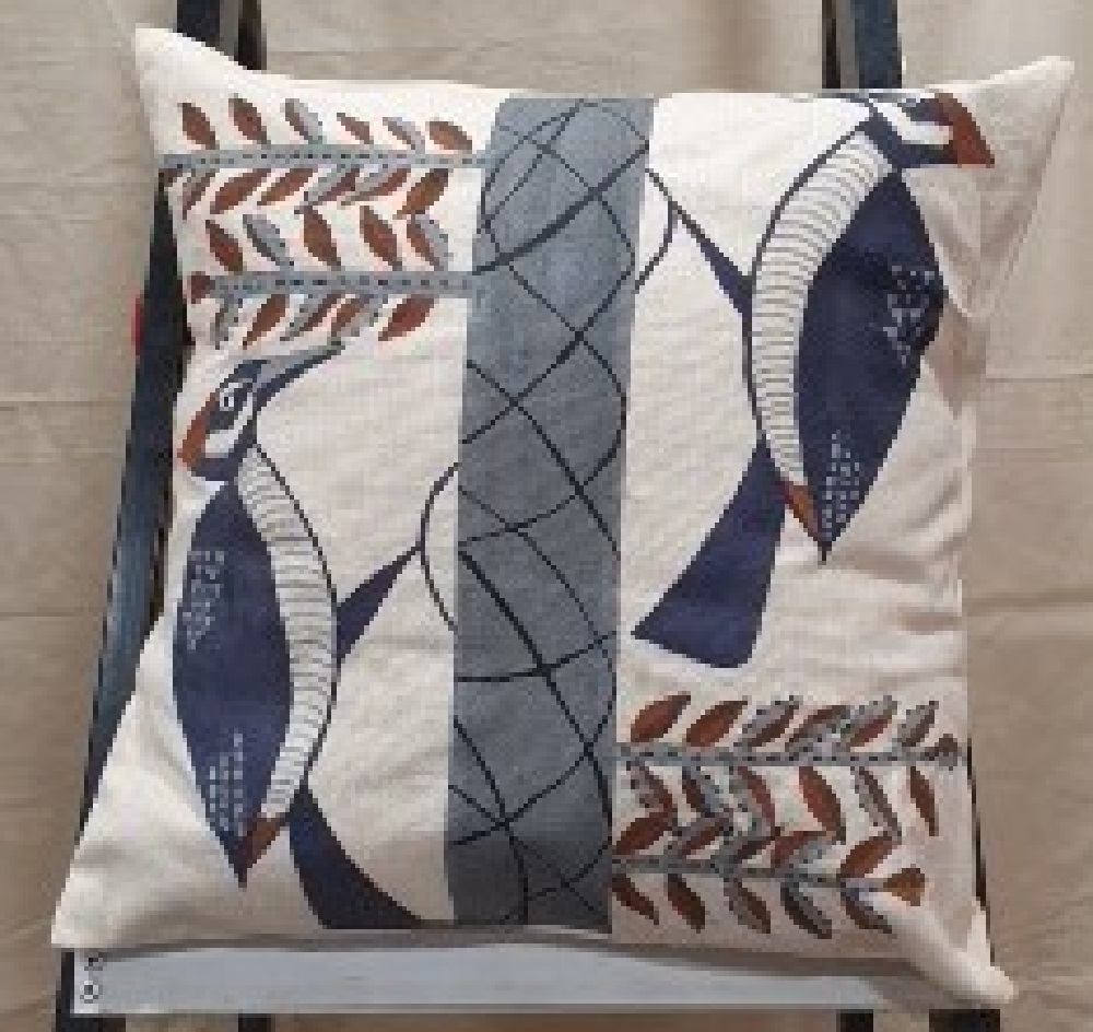 This beautiful handmade cushion cover is a perfect addition to your home decor collection. Created by skilled artisans in India, it features a unique bird motif and stylish leaf patterns, beautifully crafted to add a pop of color and elegance to your space. The blend of blues, browns, and cream tones offers a versatile design that suits a variety of interior styles. The high-quality fabric and intricate detailing make this cushion cover a standout piece in any room, whether placed on your sofa, bed, or chair.